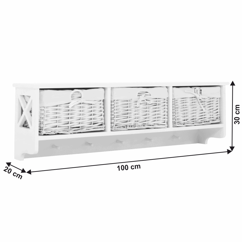 Poliţă cu 3 coşuri, alb, RAFAELLO