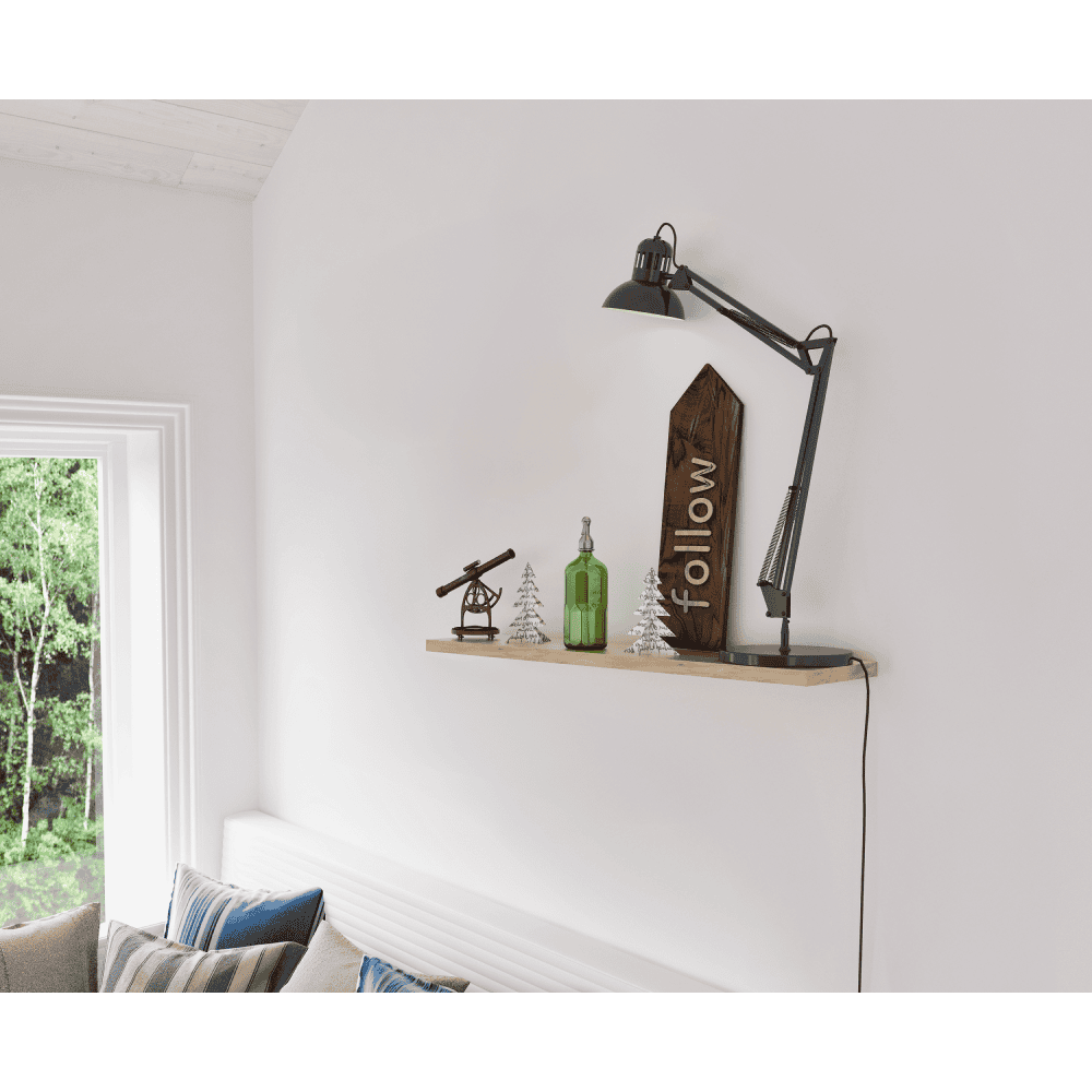 Material: DTD laminat Culoare: stejar artisan Dimensiuni (lxAxh): 80x20x2,2 cm Grosimea materialului: 2,2 cm Portanţă: 7 kg Greutate: 3 kg O poliţă De perete Suspendată Spaţiu de depozitare deschis Livrat cu material de montare Fitinguri de perete ascunse Elegant Livrat fără decoraţiunile prezentate Recomandat pentru a fi fixat pe perete Produs slovac de calitate Livrat asamblat