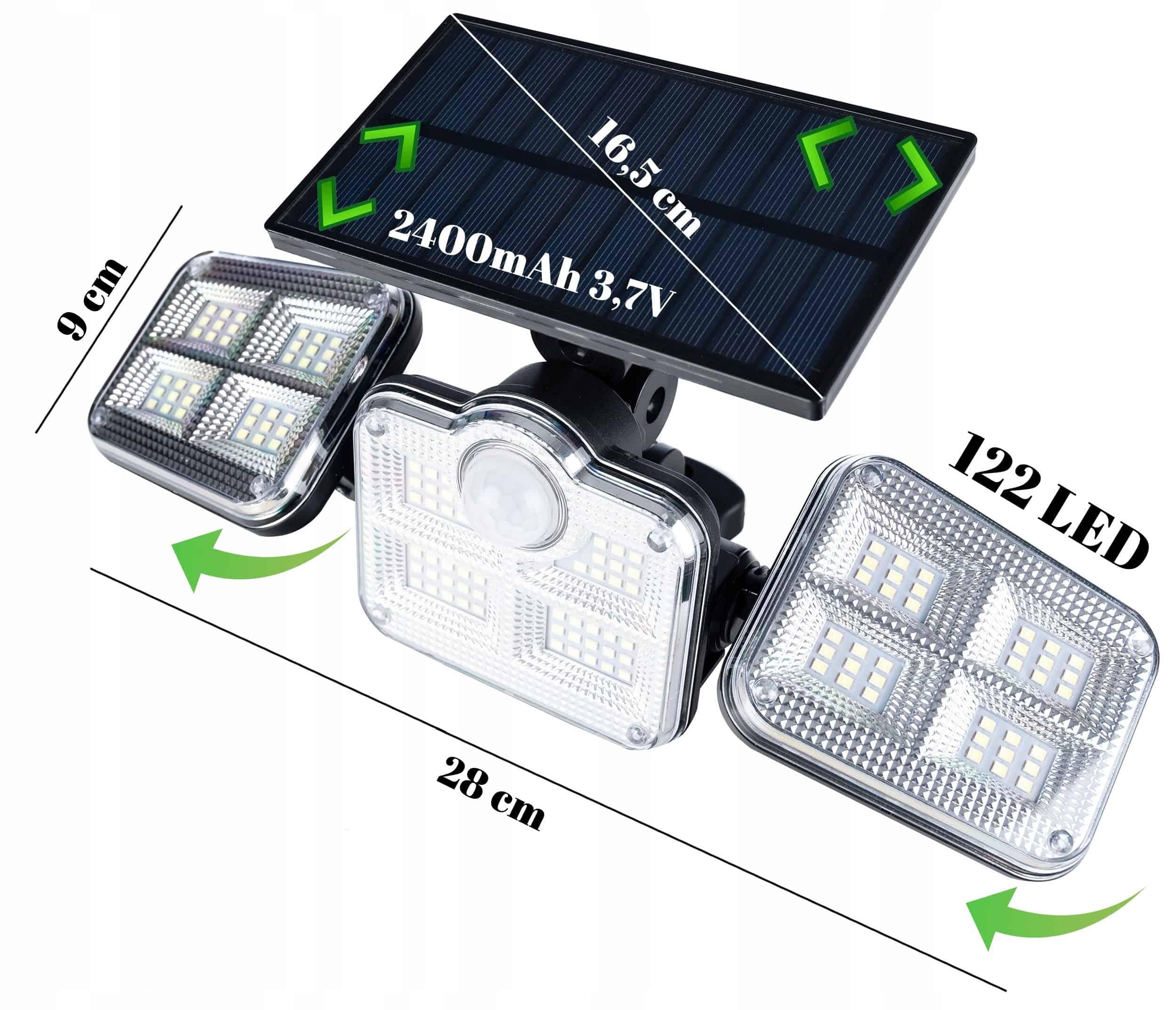 - Incarcare solara Panourile de lumina si panoul solar pot fi reglate individual Baterie: li-ion 2400m