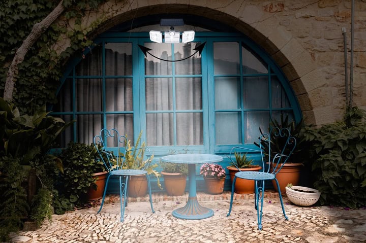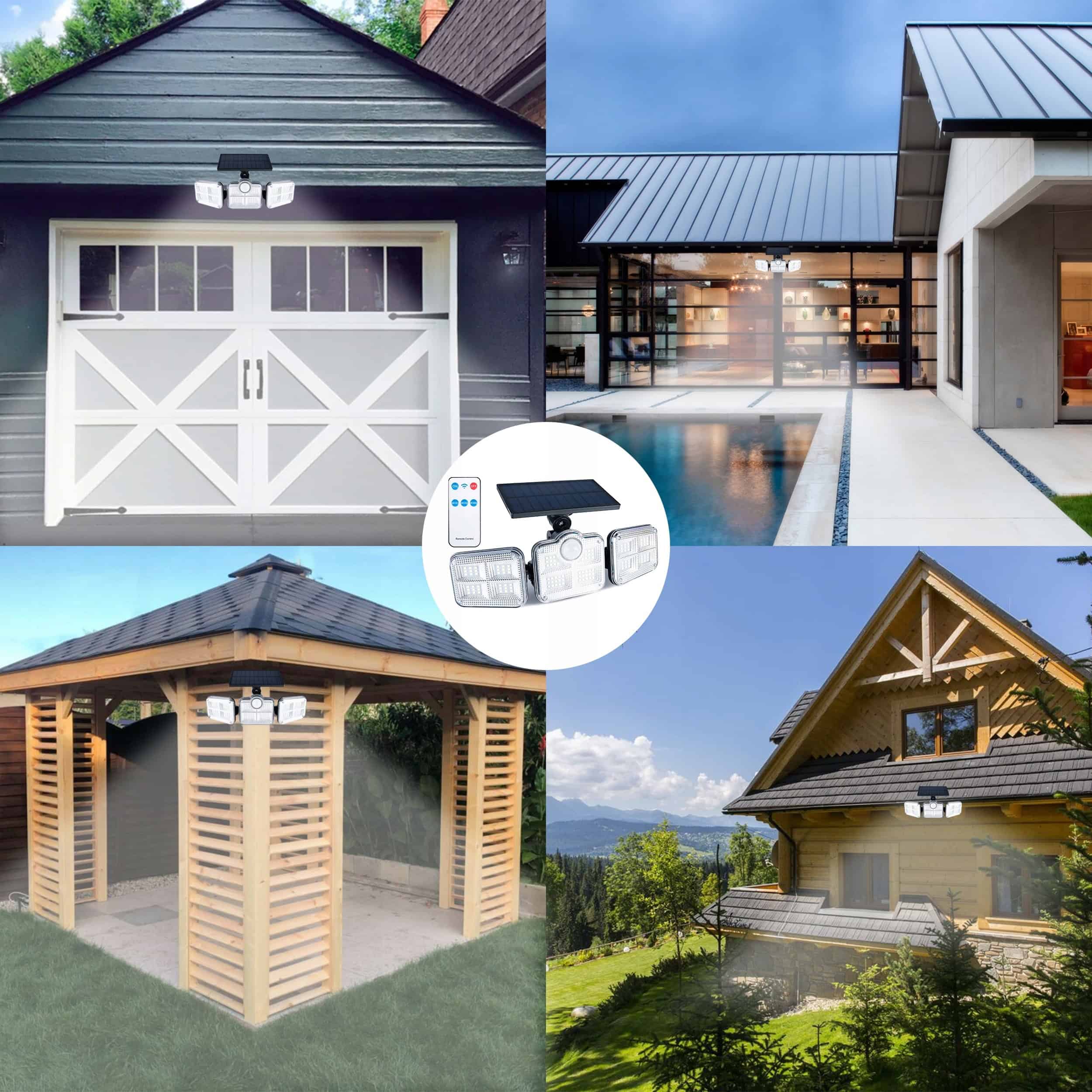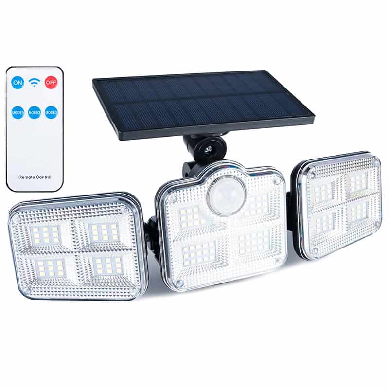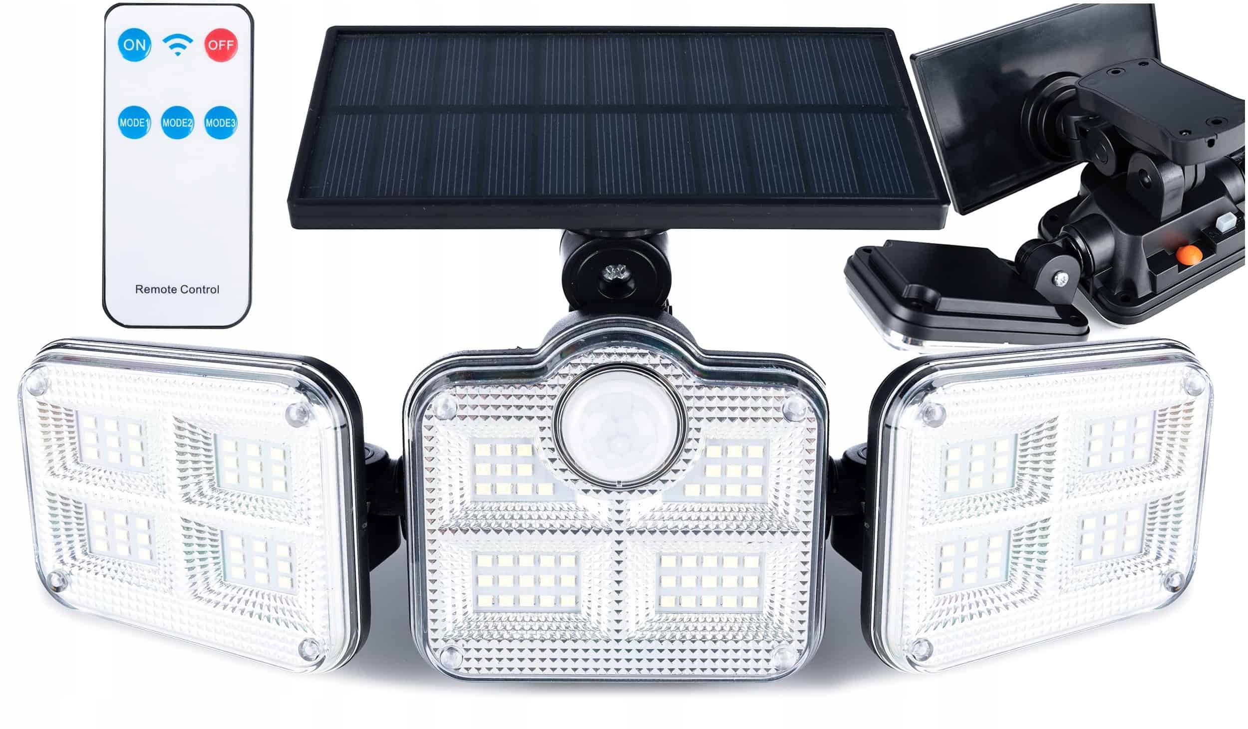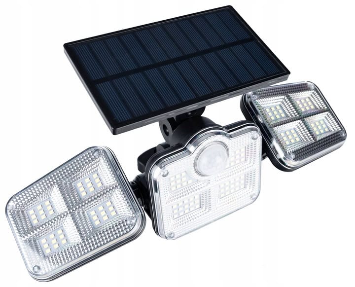 Proiector LED solar modular cu 3 lampi, senzor de miscare, 122LED-uri, cu telecomanda Mob360
