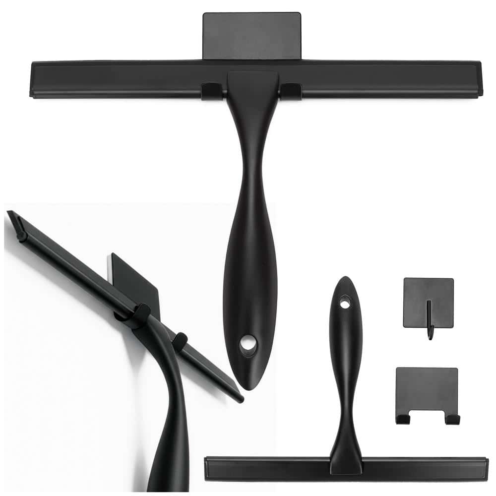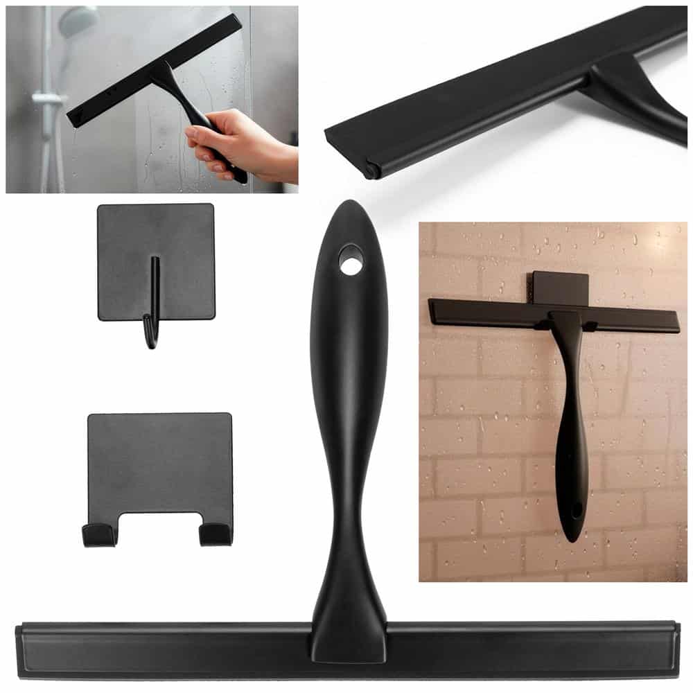 Racleta pentru baie din inox cu suport adeziv, lama 25 cm, finisaj mat negru Mob360 – produs disponibil în magazinul Mob360.