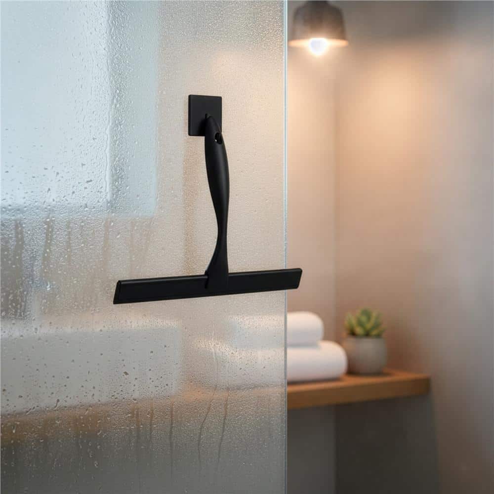 Racleta pentru baie din inox cu suport adeziv, lama 25 cm, finisaj mat negru Mob360