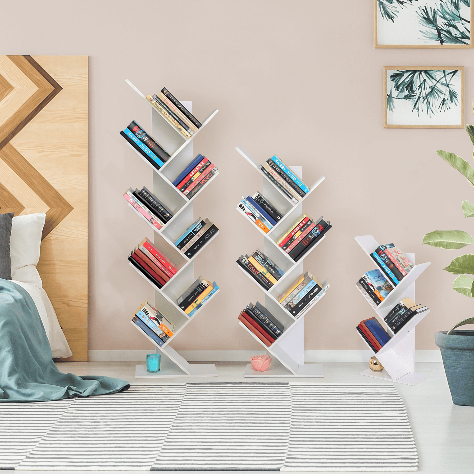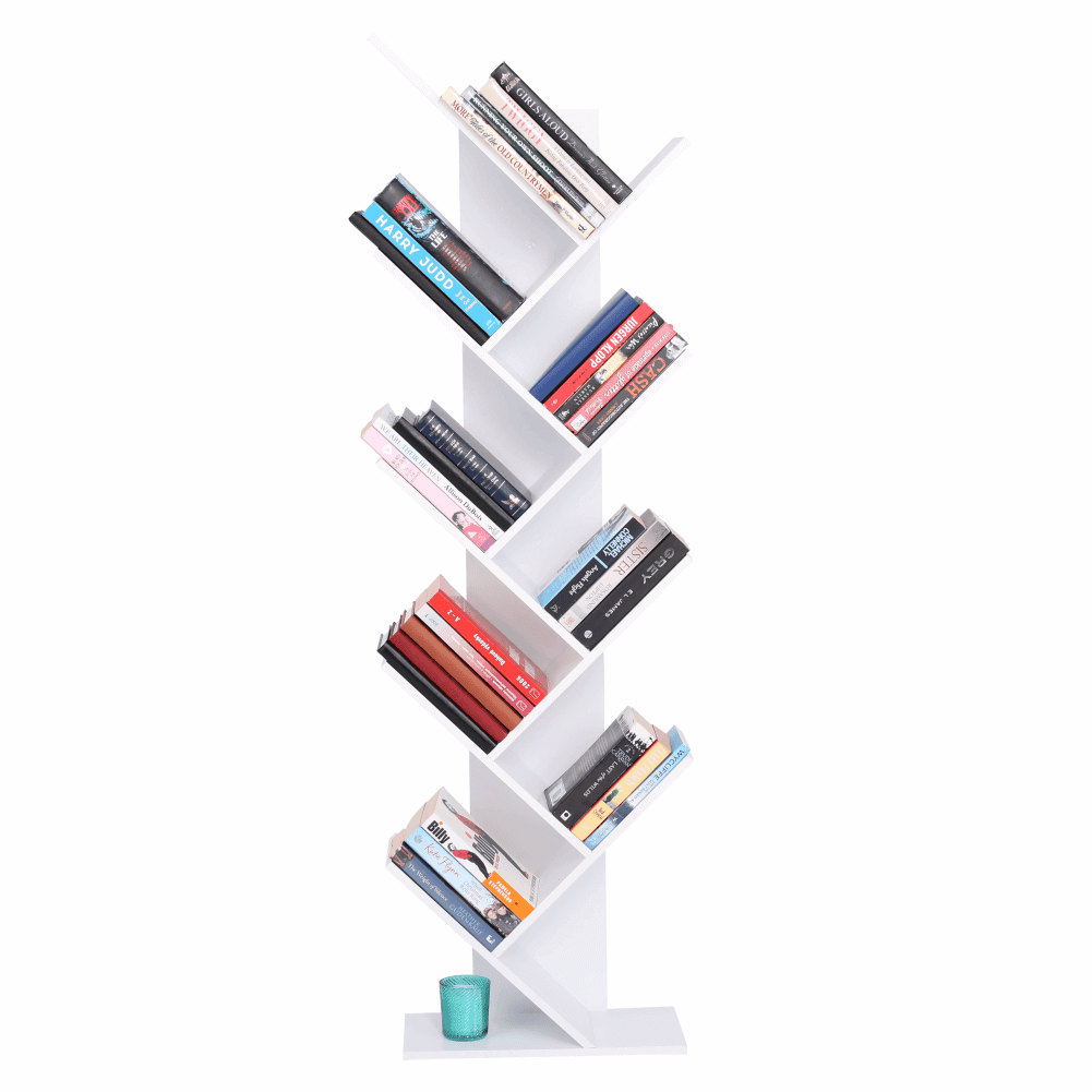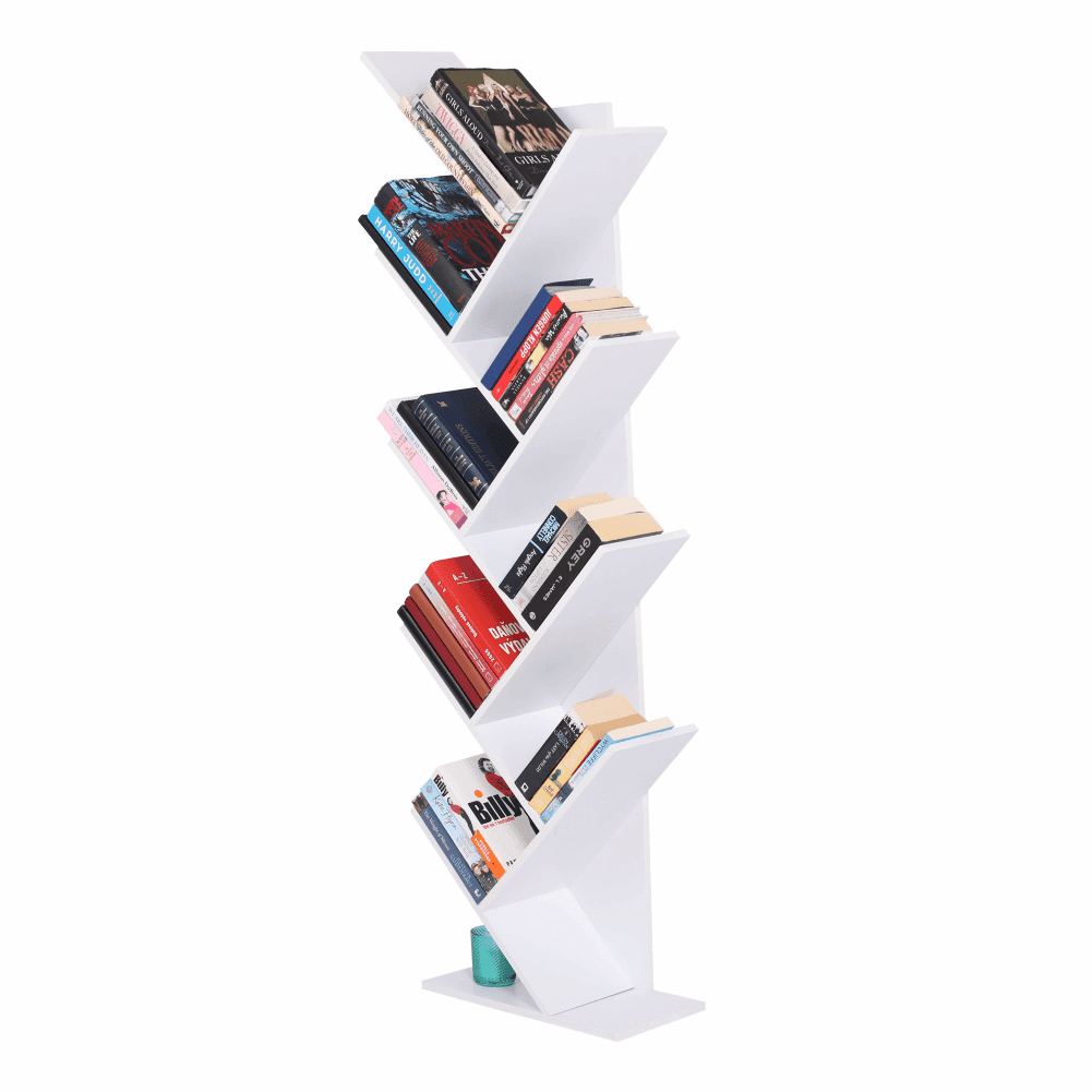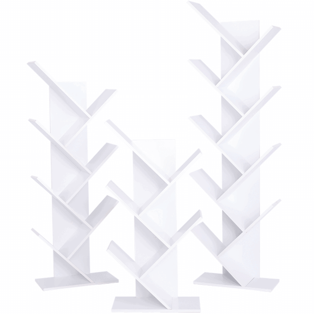 Raft multifuncţional de culoare albă care se poate folosi ca bibliotecă.
