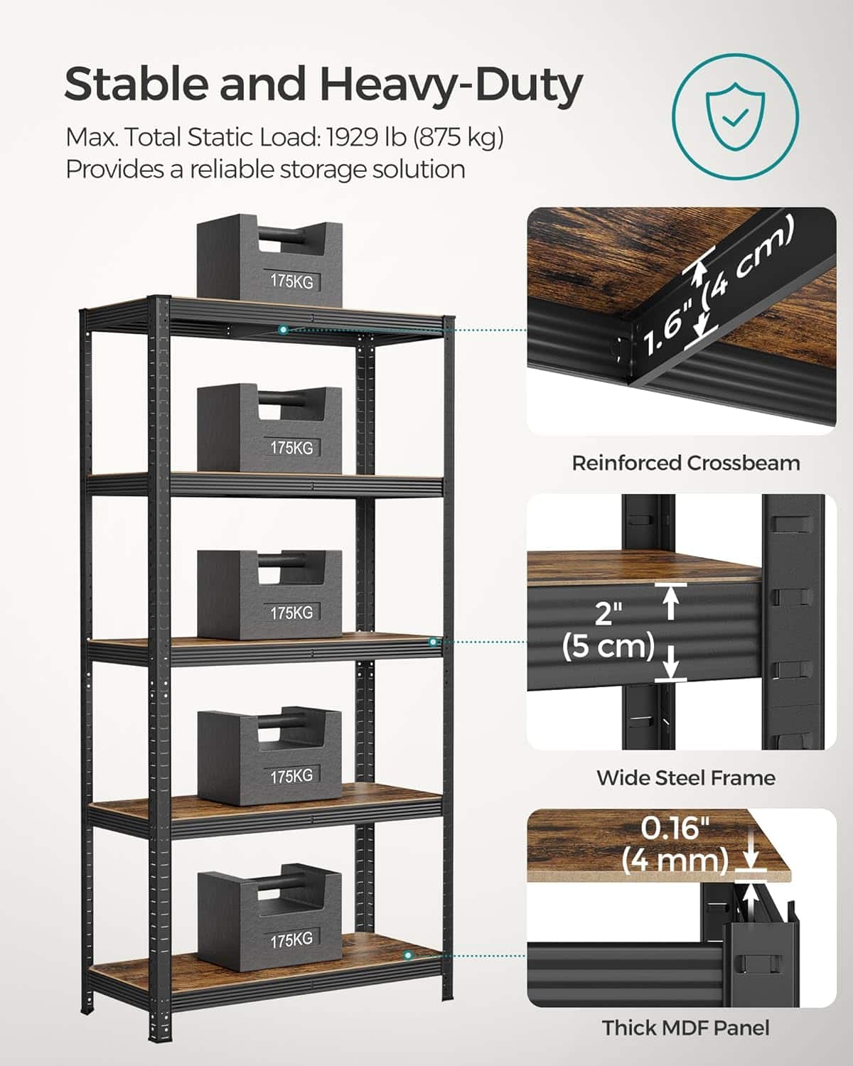 Raft cadru metalic modular pentru depozitare, 5 polite, 180x90x40 cm, sarcina 875 kg, maro rustic Mob360 – produs disponibil în magazinul Mob360.