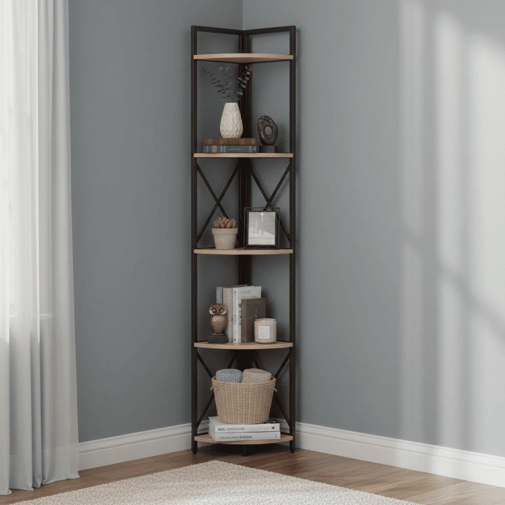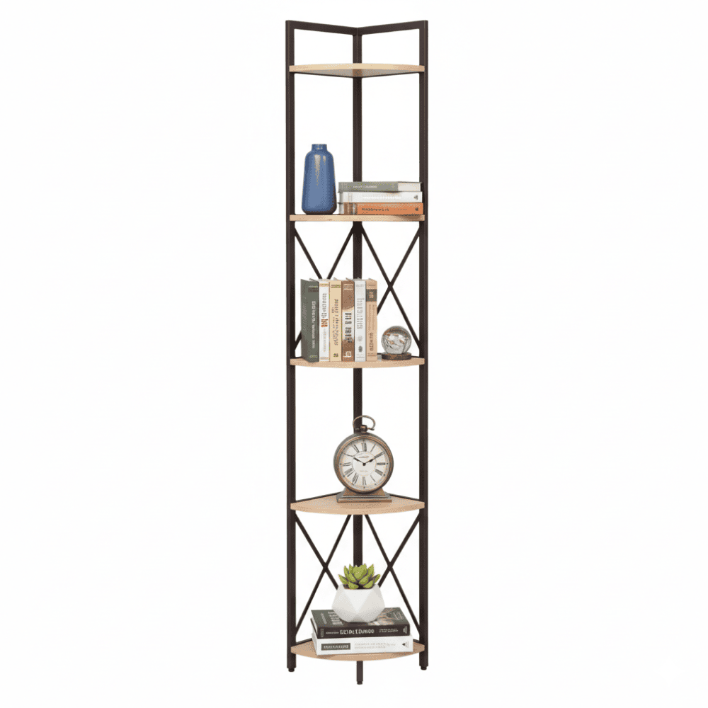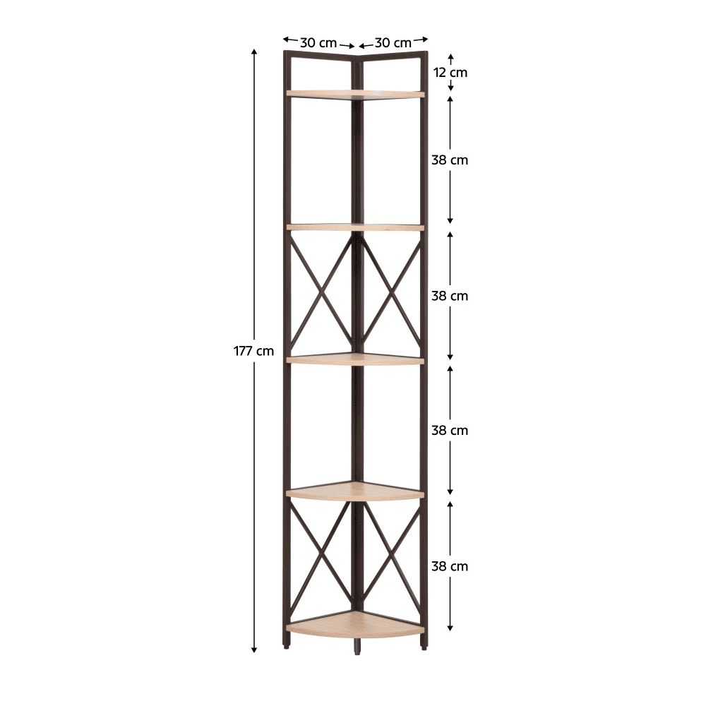Raft de colţ cu poliţe, stejar/negru, PASOKO