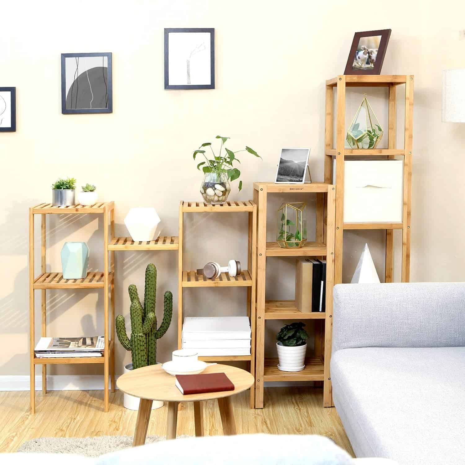 Specificatii: Culoare: Natural Material: Bambus Dimensiunea produsului: 33 x 33 x 146 cm (L x l x a) Distanta dintre rafturi: 30 cm Inaltimea dintre cel mai mic raft si podea: 13,5 cm Greutatea produsului: 4,6 kg Este necesara o asamblare simpla: Da Despre acest articol Impodobiti-va camera cu acest admirabil raft din bambus natural. Va va surprinde cu stabilitatea si durabilitatea sa.Ce poate fi mai bun decat un raft inteligent pentru a crea un spatiu mic? Acest raft de depozitare pe 5 niveluri, cu o dimensiune de 33 x 33 x 146 cm, va ajuta sa maximizati spatiul vertical pentru a economisi spatiu pe podea.Puneti prosoapele si samponul in baie; depozitati condimentele si tigaile in bucatarie; puneti ghivece de flori si bibelouri in camera de zi. Arata-ne creativitatea ta! Asamblarea este super usoara!