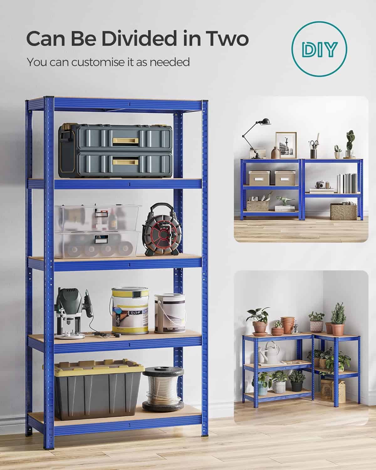 Kitul anti-inclinare inclus ajuta la atasarea raftului la perete, facandu-l mai stabil si mai sigur.Aceasta unitate de rafturi metalice poate fi impartita in 2 unitati separate pentru a se potrivi nevoilor dvs.