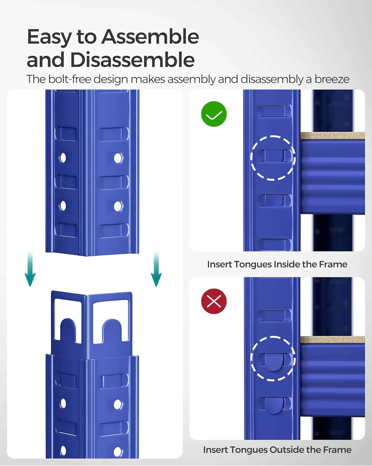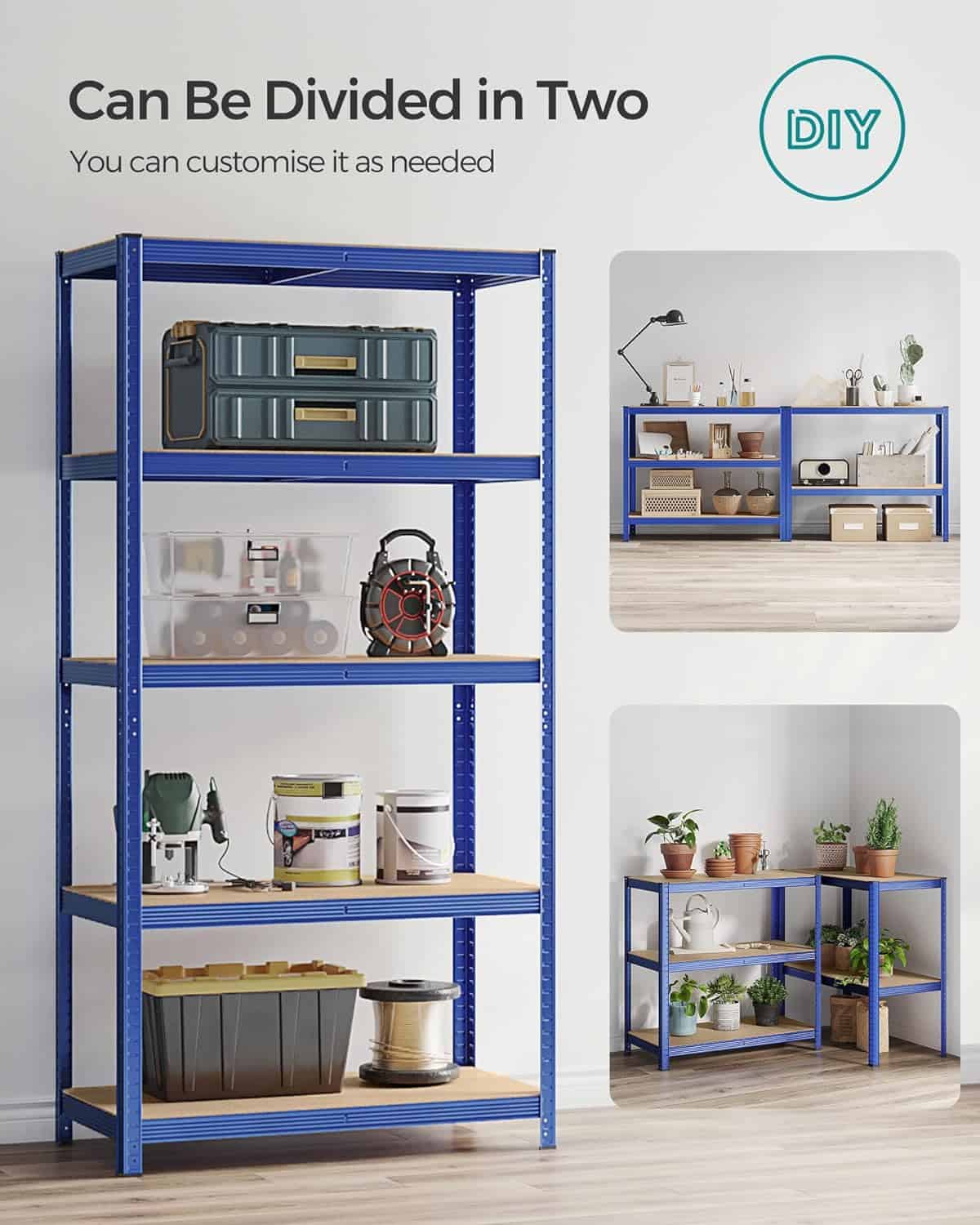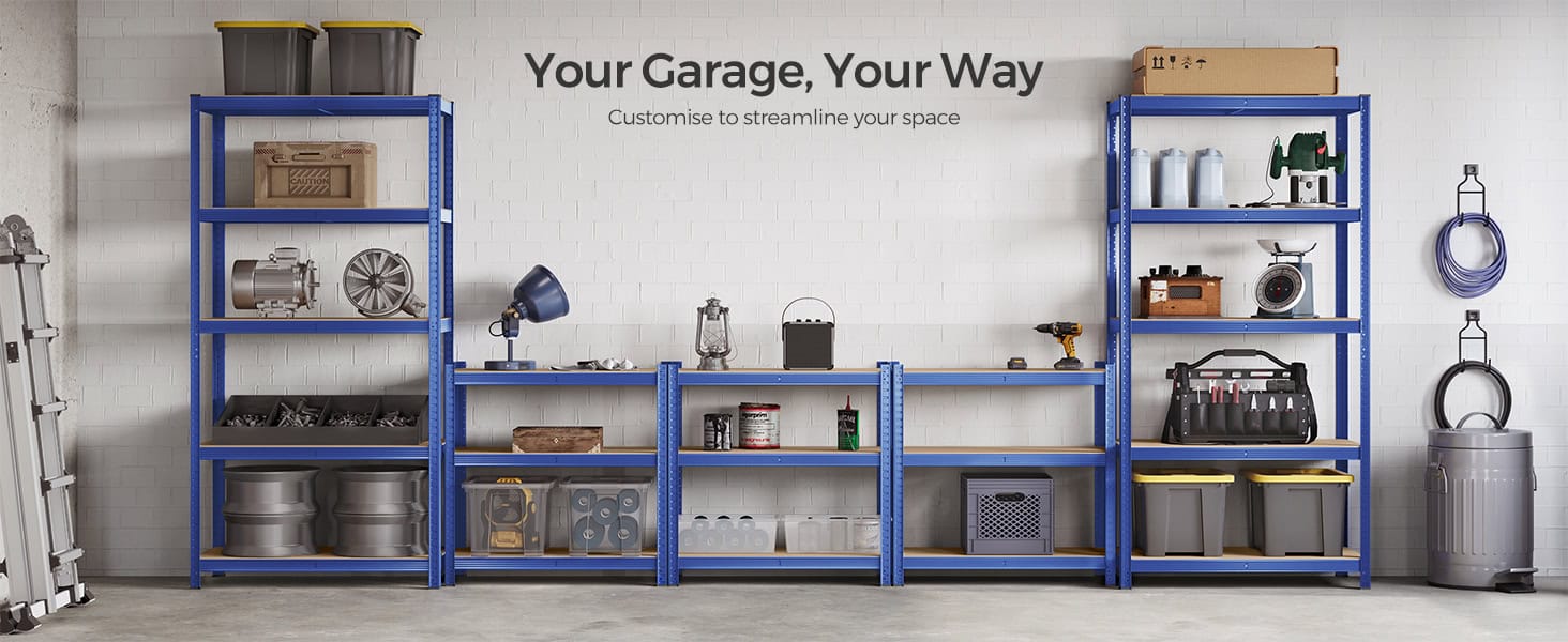 Specificatii: Culoare: albastru Material: cadru din otel, placi aglomerate Dimensiunea produsului: 50 x 100 x 200 cm (D x L x H) Greutatea produsului: 9,1 kg Capacitate de incarcare statica pe nivel: 120 kg Capacitate de incarcare statica totala: 600 kg Despre acest articol Aceasta unitate de rafturi pentru garaj este realizata cu un cadru din otel, iar fiecare nivel poate sustine pana la 120 kg. Kitul anti-inclinare inclus ajuta la atasarea raftului la perete, facandu-l mai stabil si mai sigur.Aceasta unitate de rafturi metalice poate fi impartita in 2 unitati separate pentru a se potrivi nevoilor dvs. de depozitare si spatiului dvs.; odata impartite, acestea functioneaza, de asemenea, excelent ca bancuri de lucru cu depozitare. Fiecare nivel poate fi ajustat cu usurinta la fiecare 5 cm.Cu dimensiuni de 50 x 100 x 200 cm si o capacitate de incarcare totala de 600 kg, aceasta unitate de rafturi poate fi utilizata intr-un garaj, depozit, pivnita sau camera de utilitate pentru a va organiza toate uneltele si echipamentele.Cu un design cu interblocare si instructiuni clare, aceasta unitate de rafturi de mare rezistenta este usor de asamblat si nu necesita unelte.