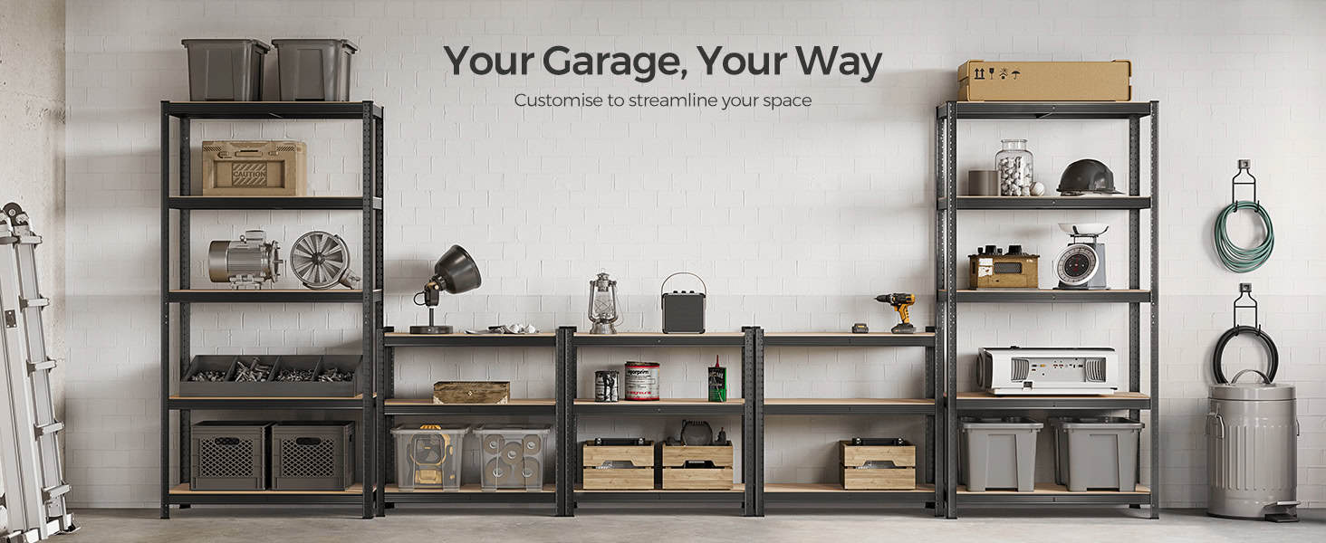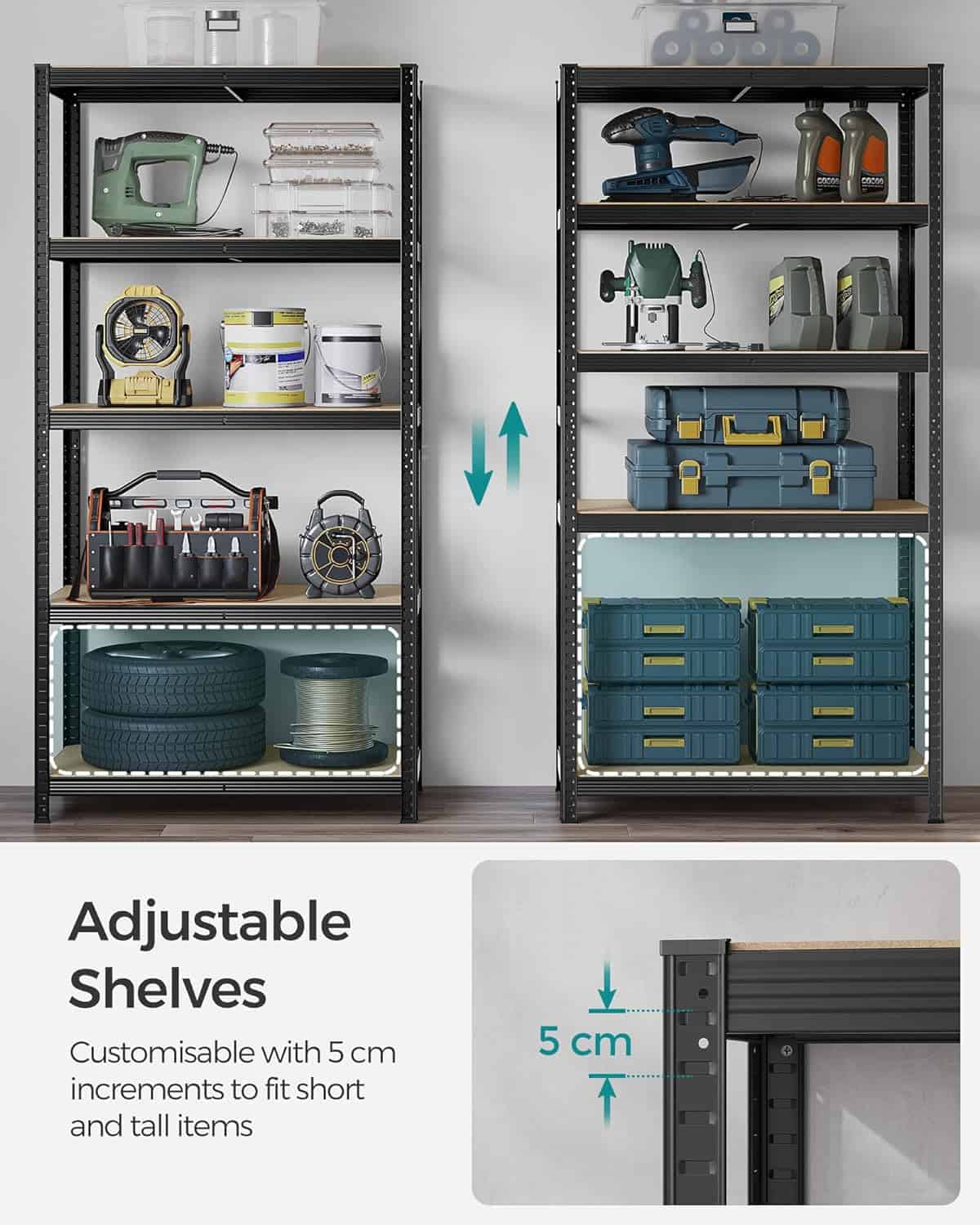 Raft de depozitare metalic, cu rafturi din PAL, 5 polite, max. 600 kg, 200x100x50cm, negru Mob360 – produs disponibil în magazinul Mob360.