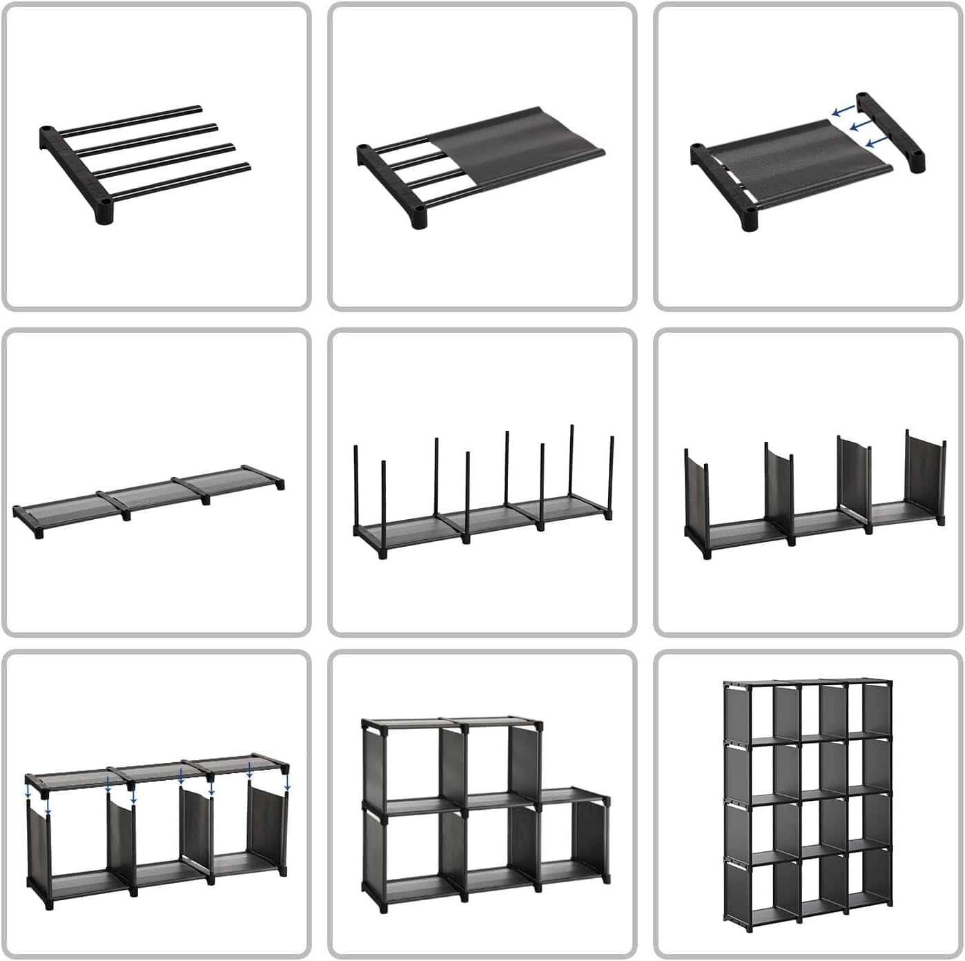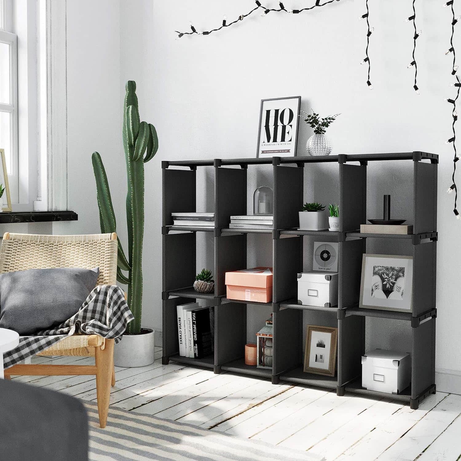 Raft de depozitare modular cu 12 cuburi, textil, personalizabil, 30x105x140 cm, negru Mob360 – produs disponibil în magazinul Mob360.
