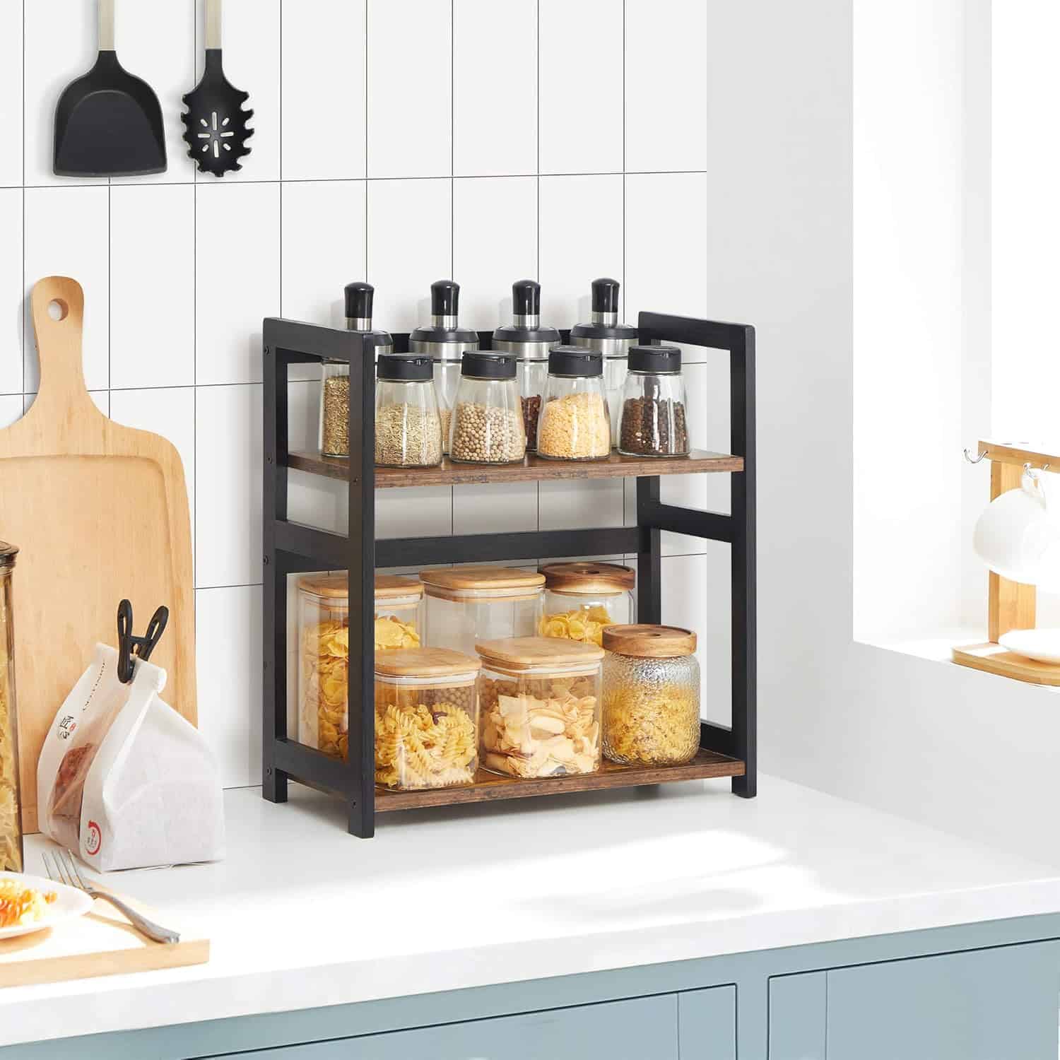 Raftul nostru de bucatarie este fabricat din bambus durabil si material lemnos, ceea ce il face stabil pentru condimentele dvs.