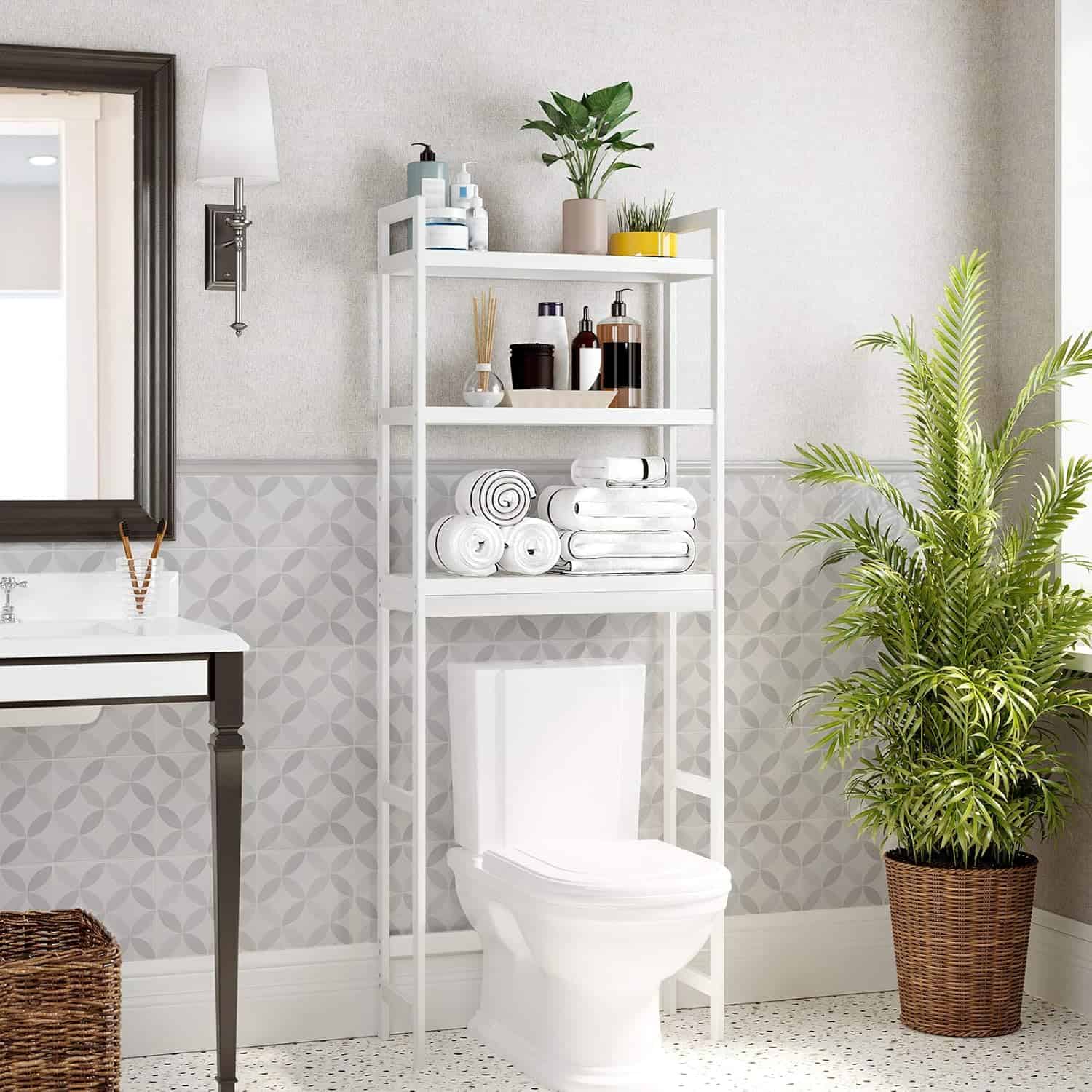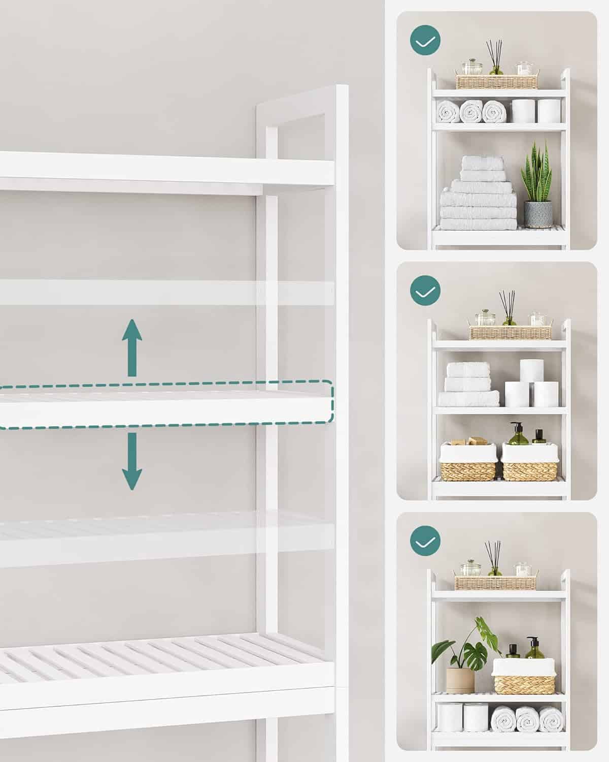 Raft de depozitare pentru baie, suprapunere peste masina spalat sau vas WC, din bambus, rafturi reglabile, 26x63x163 cm, alb Mob360 – produs disponibil în magazinul Mob360.