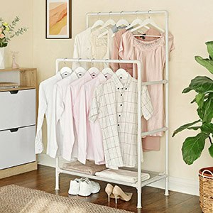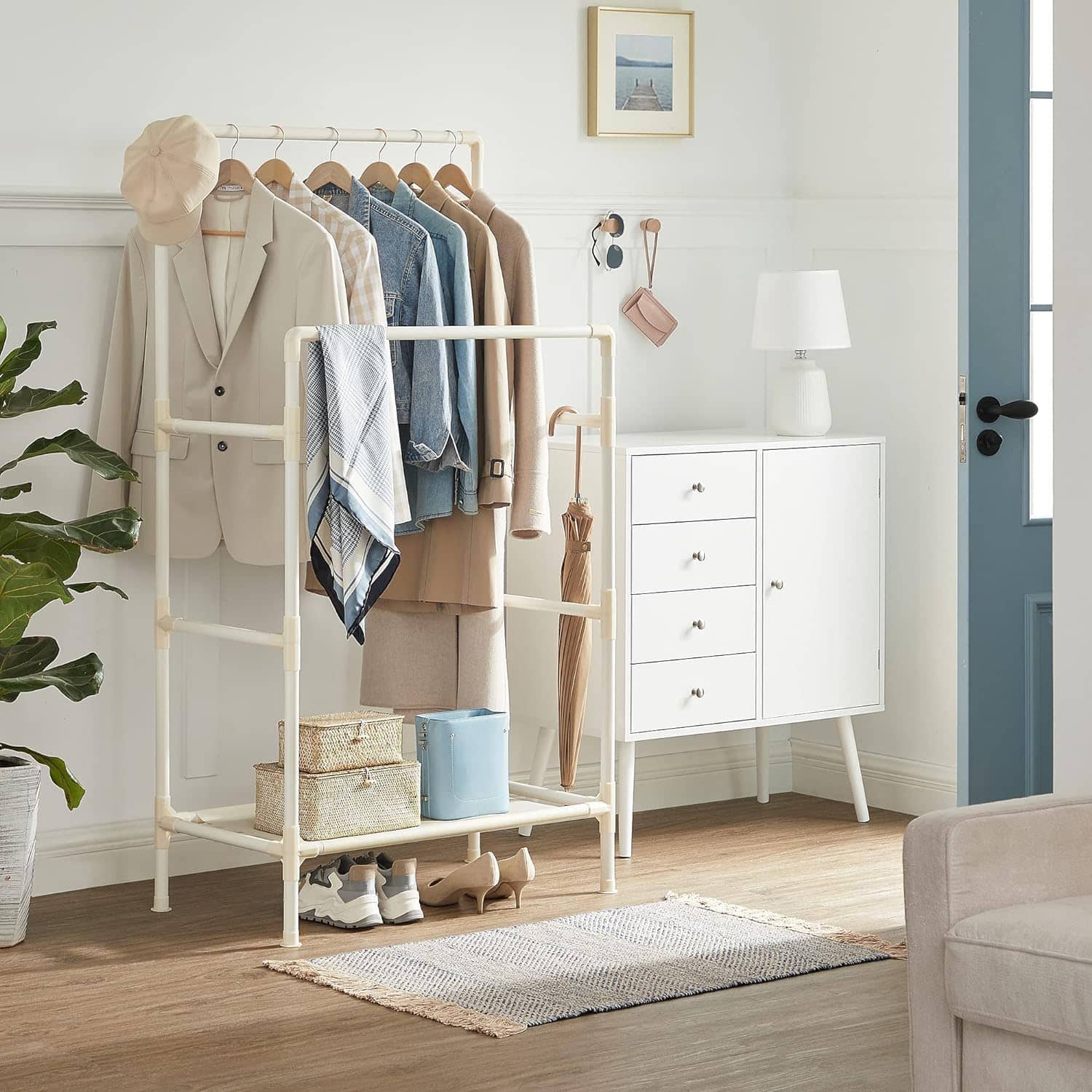 Raft de haine din metal, cu 2 bare de haine si 1 raft, maxim 70 kg, industrial, 45x83x157cm, alb Mob360