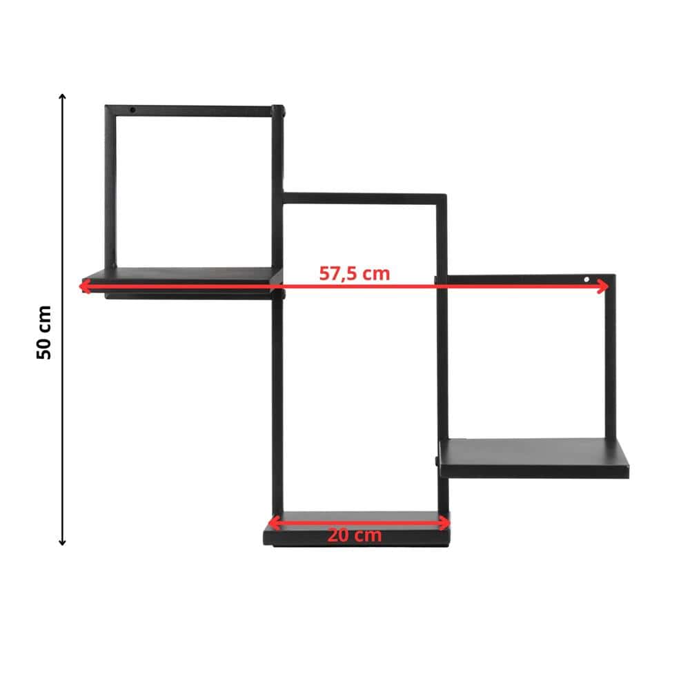 Raft de perete cu 3 polite din MDF si cadru metalic, 58x21x50 cm, negru Mob360
