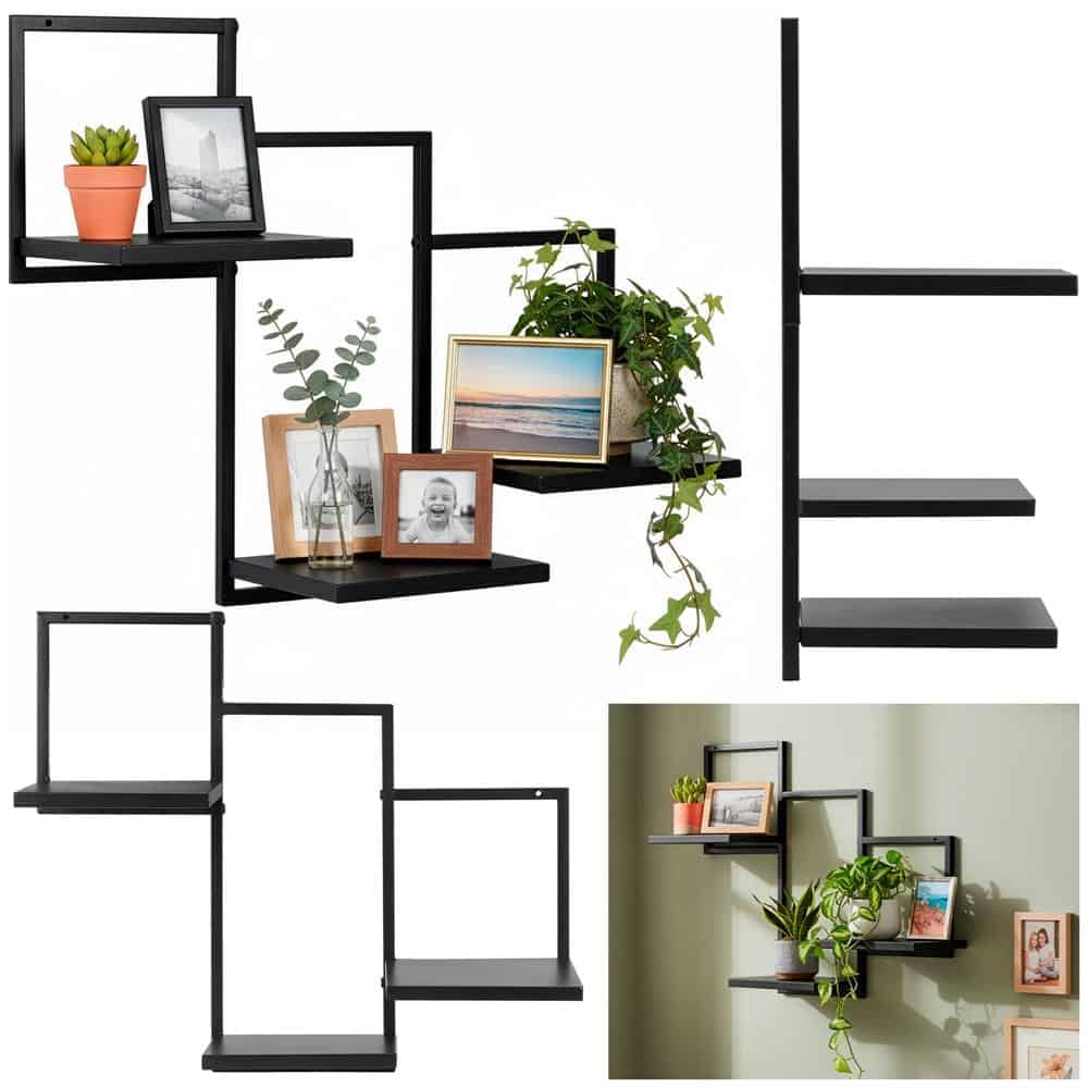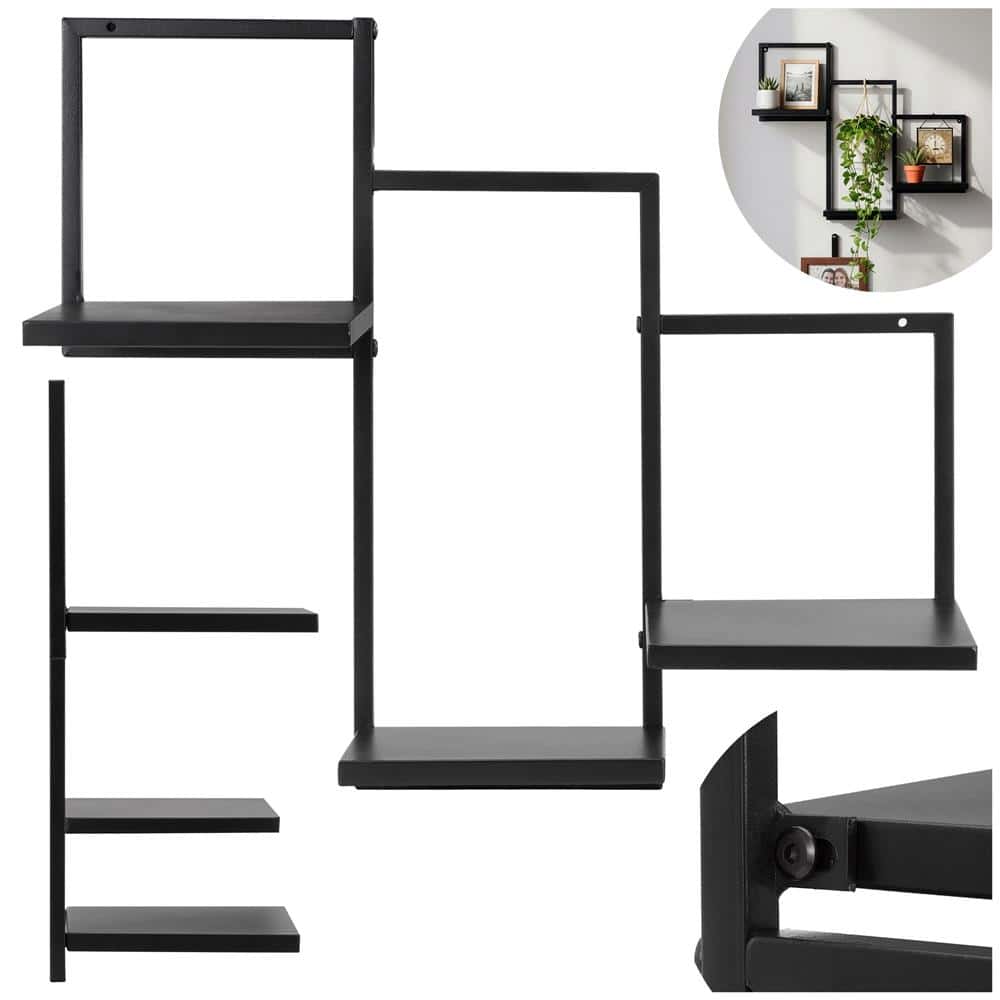 Raft de perete cu 3 polite din MDF si cadru metalic, 58x21x50 cm, negru Mob360 – produs disponibil în magazinul Mob360.