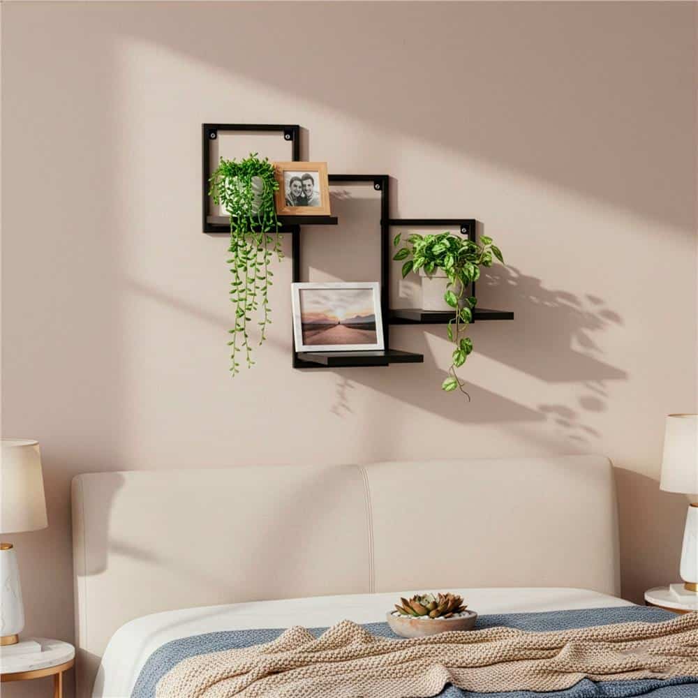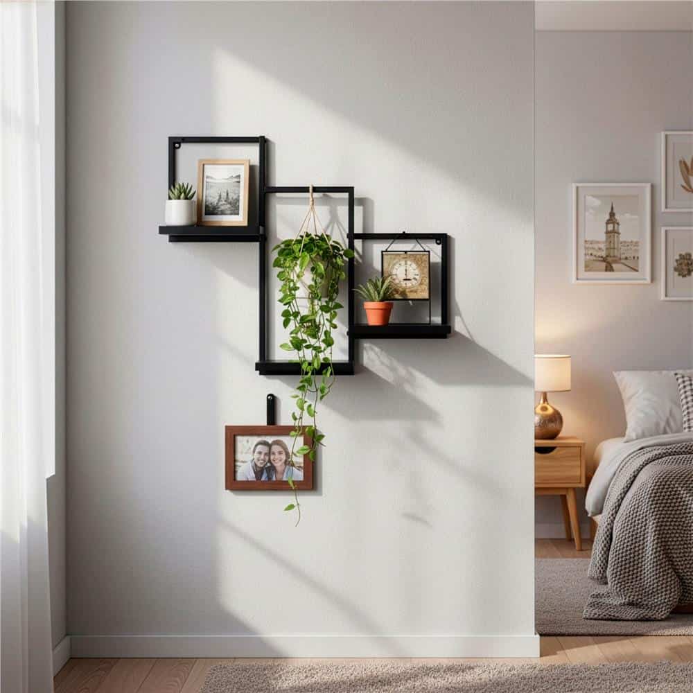Specificatii tehnice: Numar polite: 3 Material polite: MDF Material structura: metal Culoare: negru Sarcina maxima pe polita: 5 kg Latime totala: 57,5 cm Inaltime totala: 50 cm Adancime totala: 21 cm Latime profile structura: 1,3 cm Grosime profile structura: 1,3 cm Latime polite: 20 cm Adancime polite: 20 cm Grosime polite: 1,5 cm Scurta descriere: Raft de perete cu trei polite din MDF si structura metalica, conceput pentru organizarea si expunerea obiectelor decorative sau functionale. Designul modern permite integrarea usoara in living, birou sau dormitor. Caracteristici principale: Raft de perete cu 3 polite Structura metalica stabila Polite din MDF cu finisaj negru Design modern si compact Potrivit pentru living, birou sau dormitor Montaj usor cu accesorii incluse