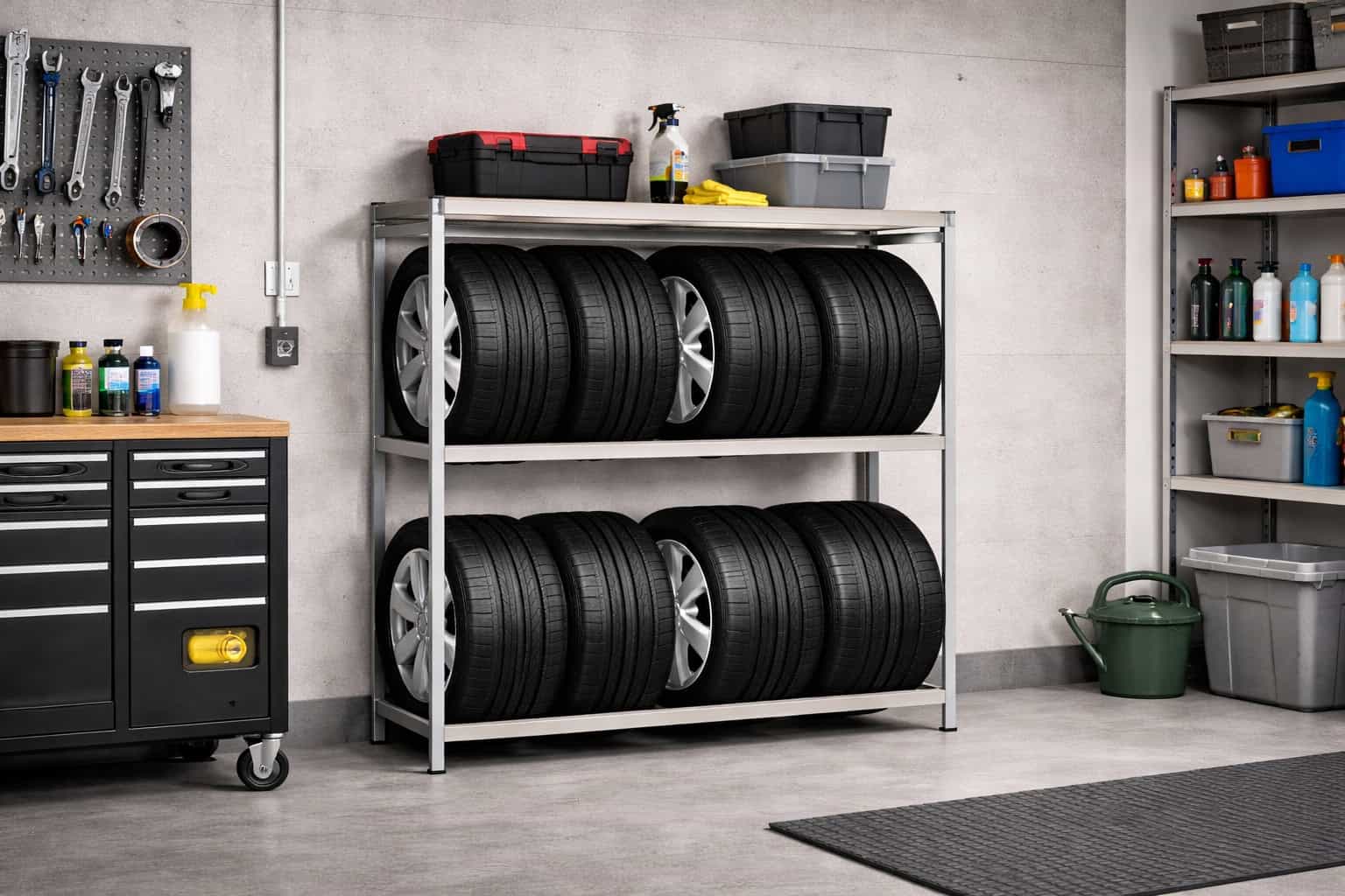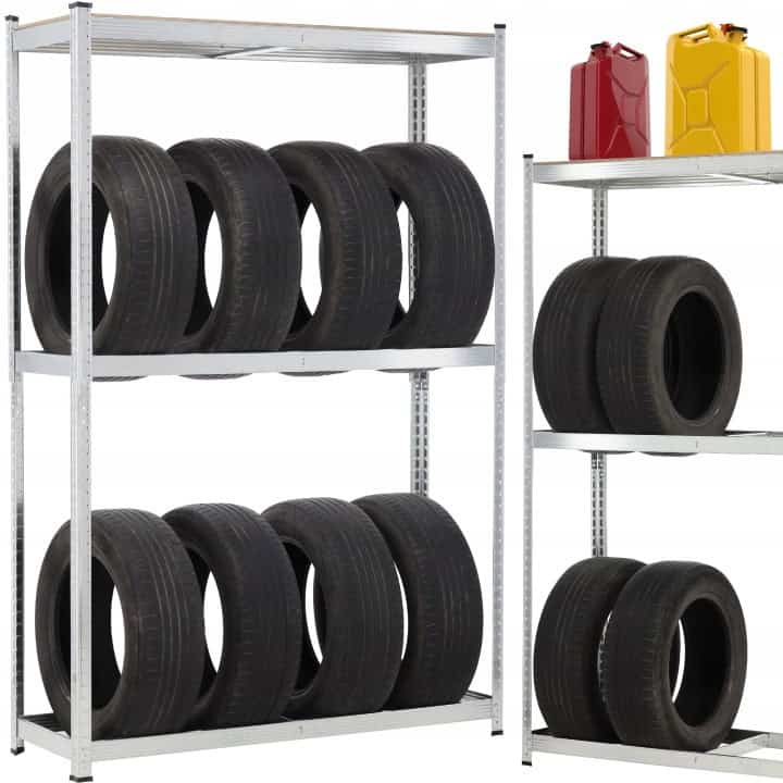 - Raftul pentru depozitarea anvelopelor este o solutie practica pentru organizarea eficienta a garajului, atelierului sau depozitului. Constructia stabila din otel galvanizat si politele rezistente din MDF permit depozitarea anvelopelor si a altor obiecte voluminoase. Sistemul de montaj fara suruburi face instalarea rapida si usoara, fara unelte. Caracteristici principale: