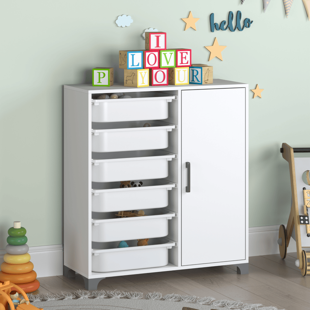 Raft/dulăpior cu cutii de depozitare, alb, VELTO