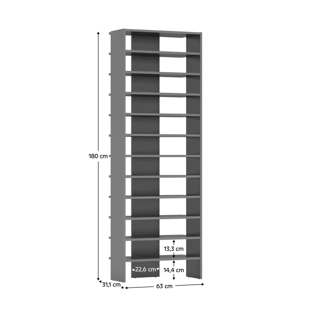 Material: DTD laminat Culoare: grafit Dimensiuni (Lxlxh): 63×31,1×180 cm Grosimea materialului: 1,6 cm Spaţiu de depozitare deschis De poliţe Portanţă poliţă: 5 kg Înălţimea între poliţe: 13,3 cm Multifuncţional Practic Pe glisoare Produs slovac de calitate Vă recomandăm ataşarea pe perete Livrat dezasamblat