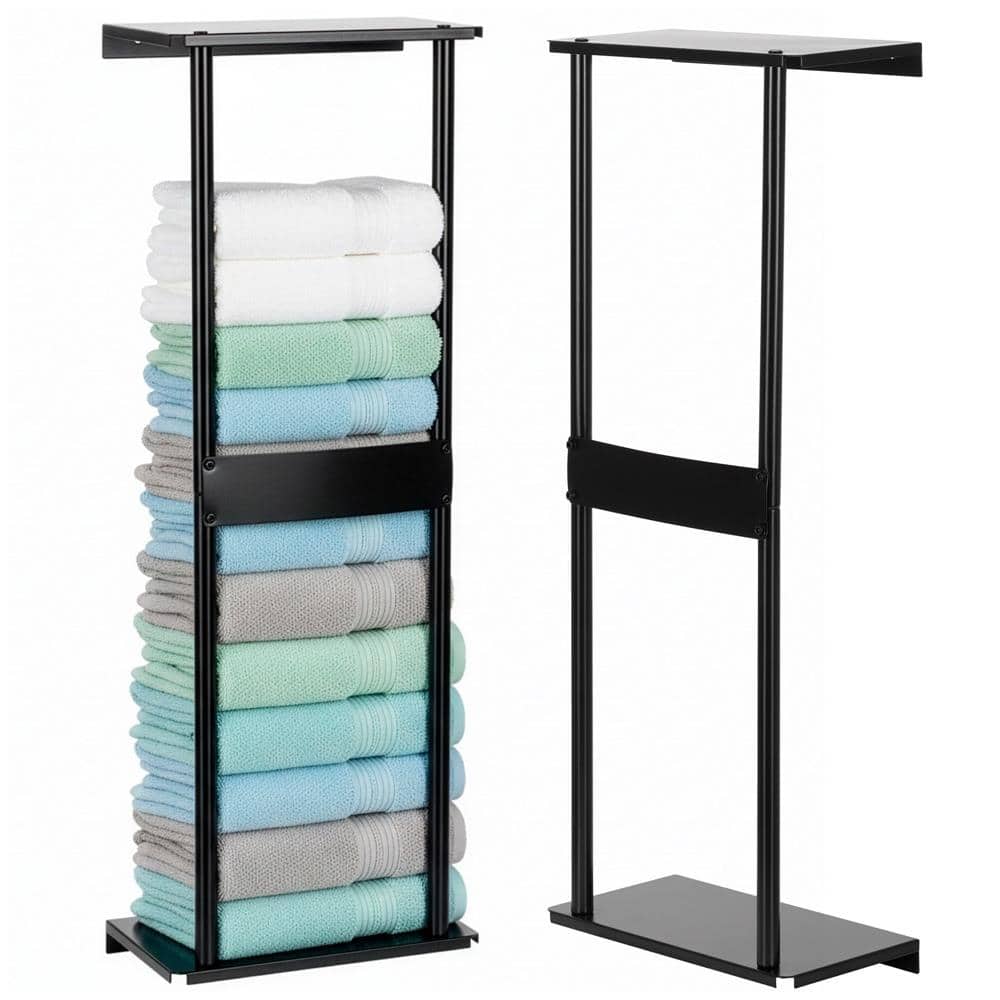Raft metalic pentru prosoape, structura cu finisaj mat, accesorii montaj incluse, 31x15x77 cm, negru Mob360