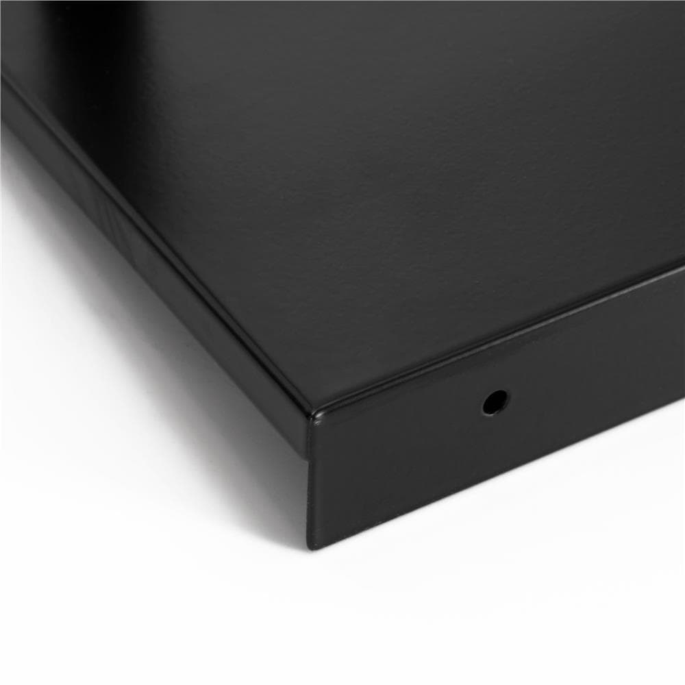 Specificatii tehnice Culoare: negru Material: metal Sarcina maxima totala: 6 kg Sarcina maxima per raft: 3 kg Inaltime totala: aproximativ 77 cm Latime rafturi: 31 cm Adancime rafturi: 15 cm Grosime margini rafturi: 0,1 cm Diametru profile: 2 cm Distanta interioara intre profile: 22 cm Latime suport: 25 cm Inaltime suport: 6 cm Scurta descriere Raft metalic cu doua niveluri, conceput pentru organizarea eficienta a obiectelor in baie, bucatarie, hol sau birou. Constructia din metal cu finisaj mat asigura stabilitate si rezistenta in utilizare zilnica. Marginile de protectie frontale si posterioare previn alunecarea obiectelor, iar designul compact permite amplasarea in spatii restranse. Produsul se livreaza pentru asamblare individuala, cu instructiuni disponibile prin cod QR. Caracteristici prin cipal e Structura metalica solida si stabila Doua niveluri pentru organizare practica Design compact, ideal pentru spatii mici Margini de protectie pentru siguranta obiectelor Finisaj mat, usor de integrat in diverse amenajari Montaj simplu, cu accesorii incluse