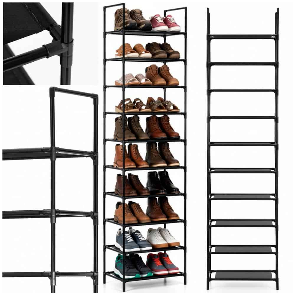 Raft pantofi inalt cu 10 polite, structura metalica si rafturi textile, 45x28x178 cm, negru Mob360 – produs disponibil în magazinul Mob360.