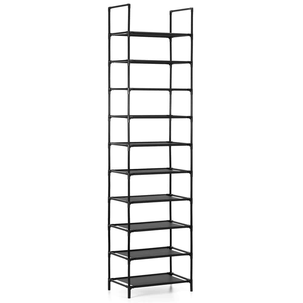Raft pantofi inalt cu 10 polite, structura metalica si rafturi textile, 45x28x178 cm, negru Mob360