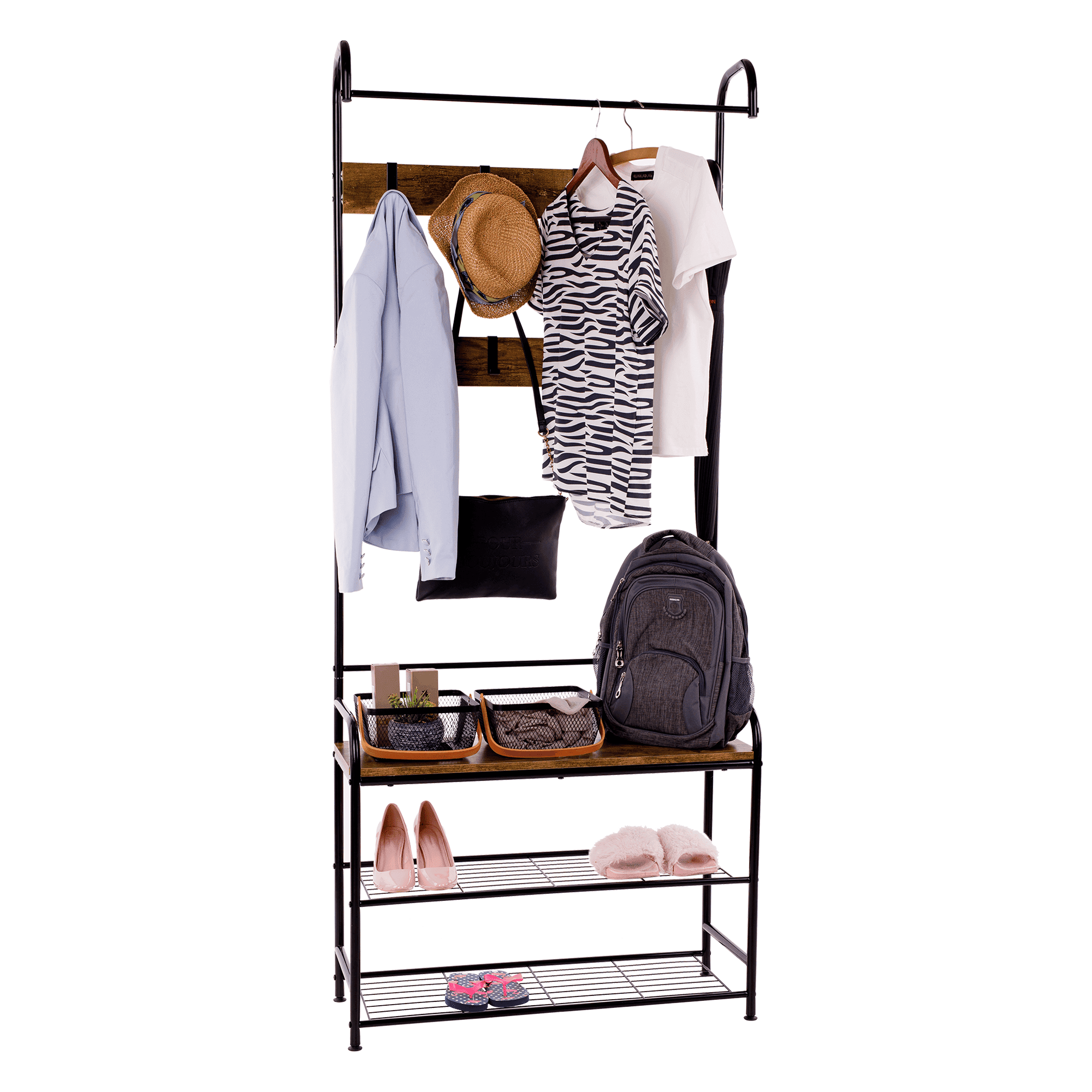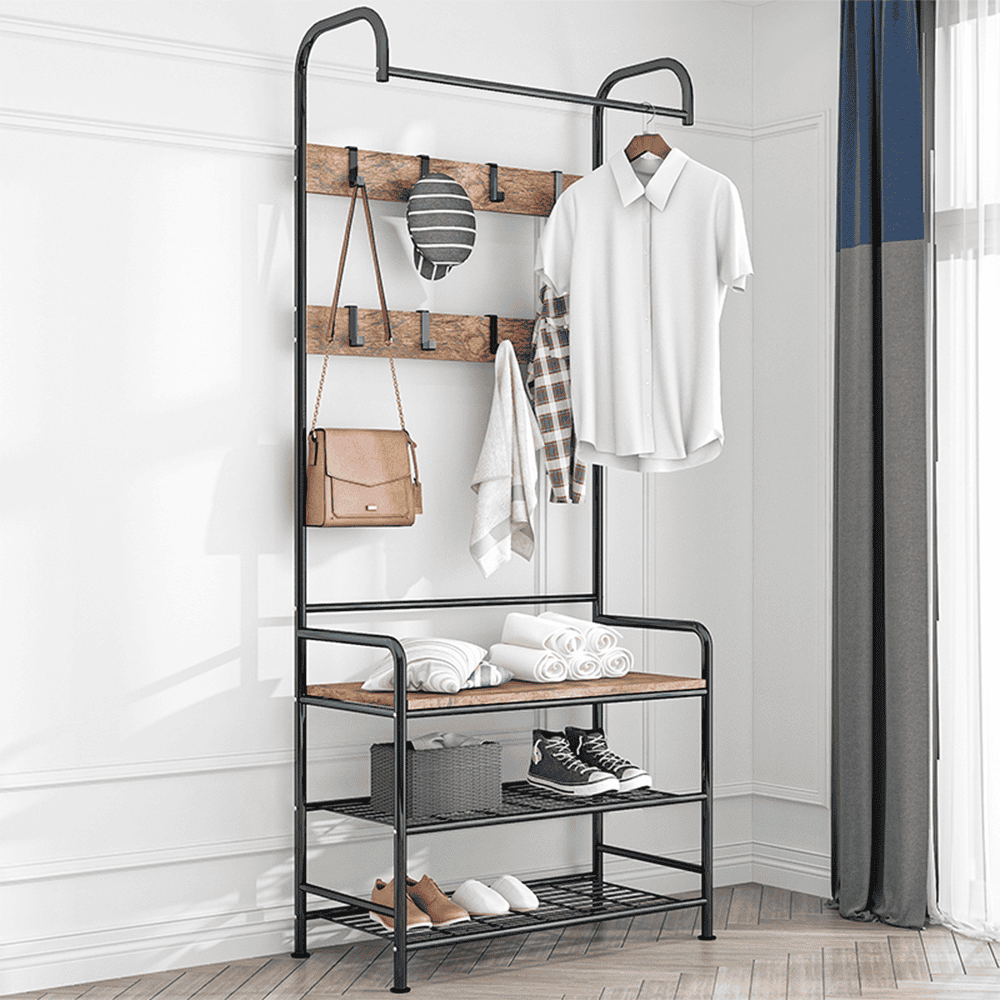 Raft pentru pantofi, lemn rustic şi metal negru / MDF, KELAM