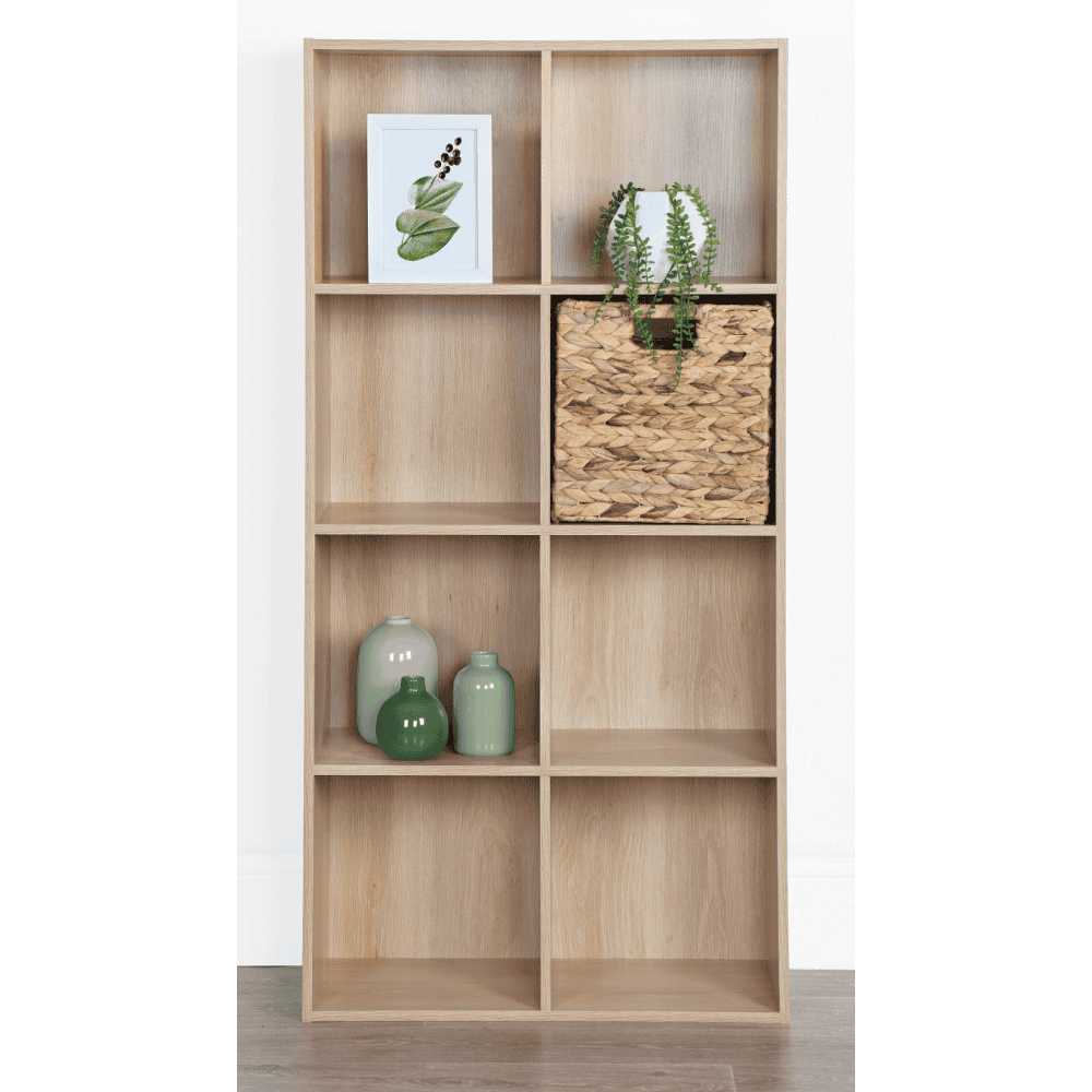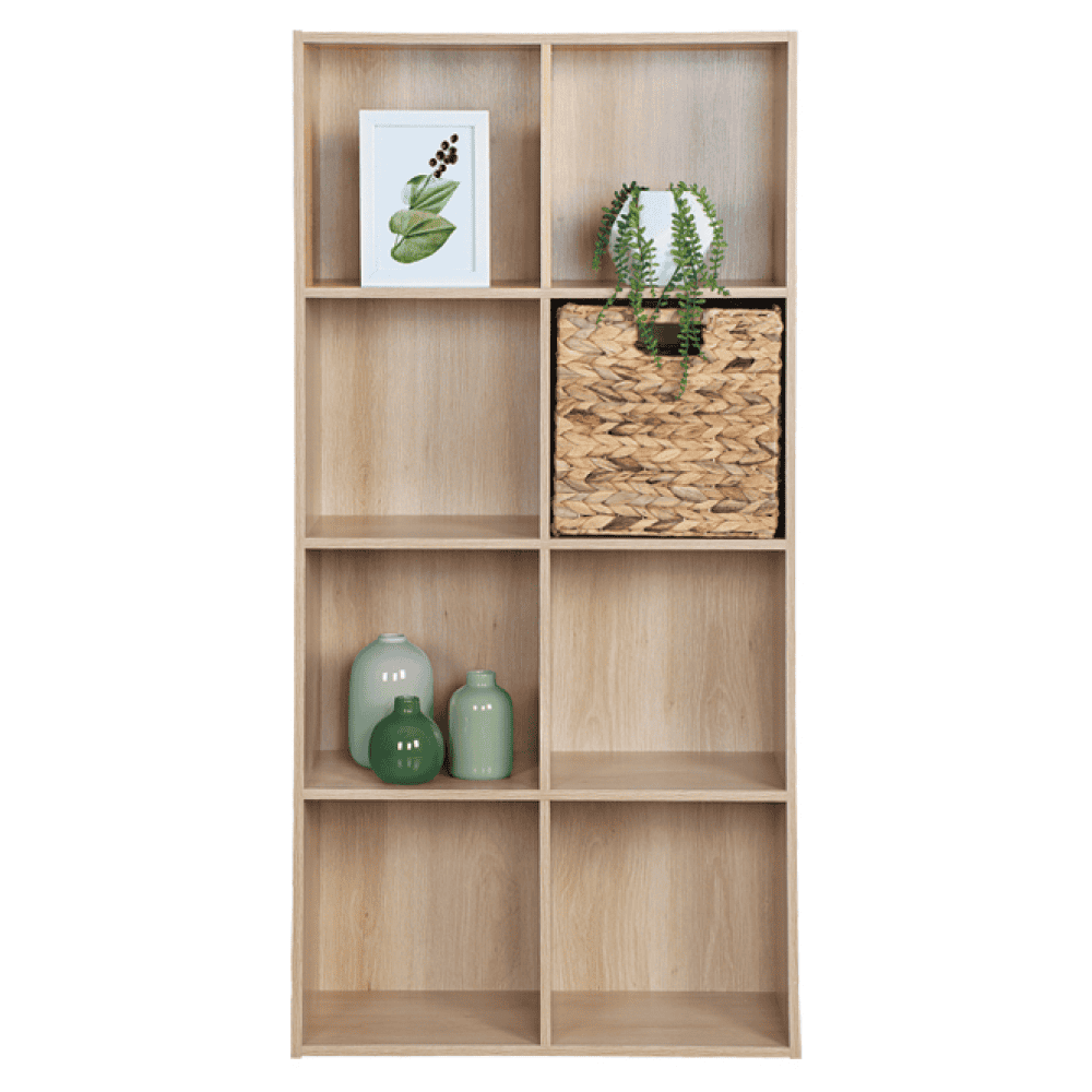 Material: DTD înfoliat Culoare: stejar natural Dimensiuni (lxAxh): 59,5×28,5×119 cm Grosime material: 1,2 cm Deschis Cu poliţe Dimensiuni poliţă (lxh): 27,7×28 cm Portanţă poliţă: 5 kg Opt zone de depozitare Raftul nu este furnizat cu cutia de depozitare Multifuncţional Practic Design modern Recomandat pentru montare pe perete Livrat dezasamblat