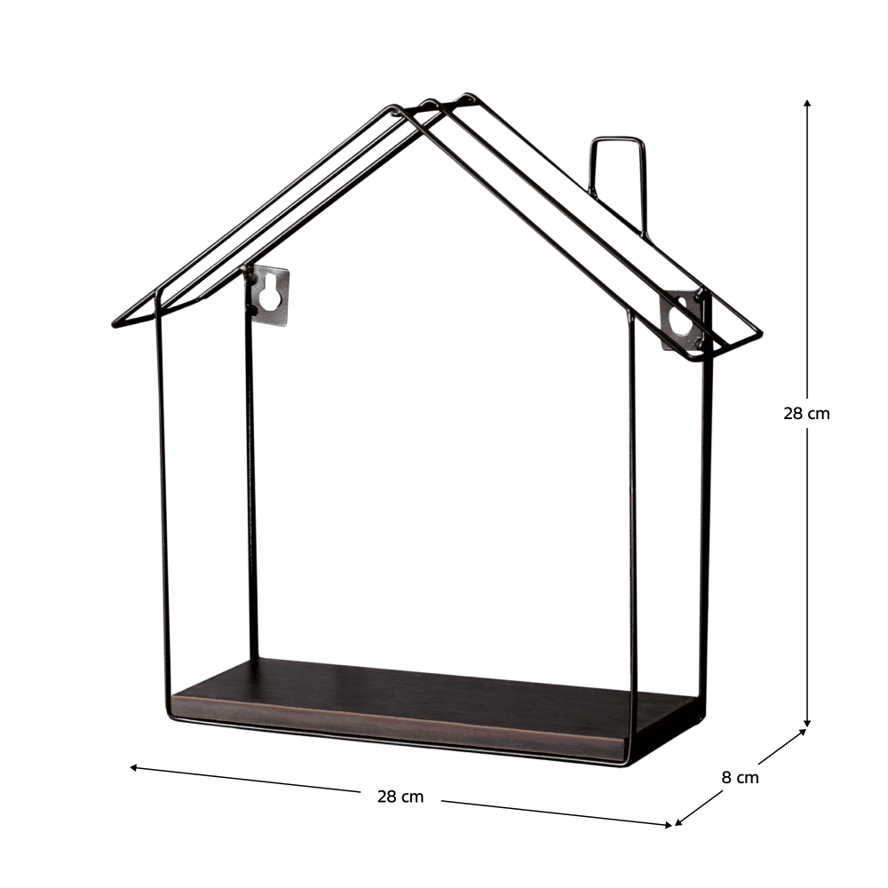 Material: MDF laminat / metal Grosime MDF: 0,9 cm Culoare: nuc / negru Dimensiuni (LxAxÎ): 28x8x28 cm Capacitate de încărcare: 3 kg Suspendat Forma de căsuţă Spaţiu de depozitare Design modern Vă recomandăm să ataşaţi mobilierul de perete Livrat asamblat
