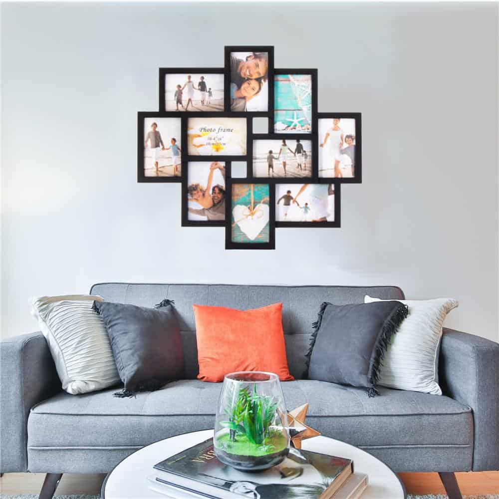 Rama foto de perete, colaj de 10 fotografii, 48x53cm, negru Mob360