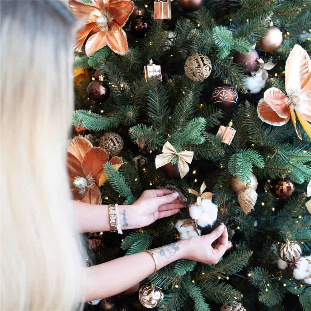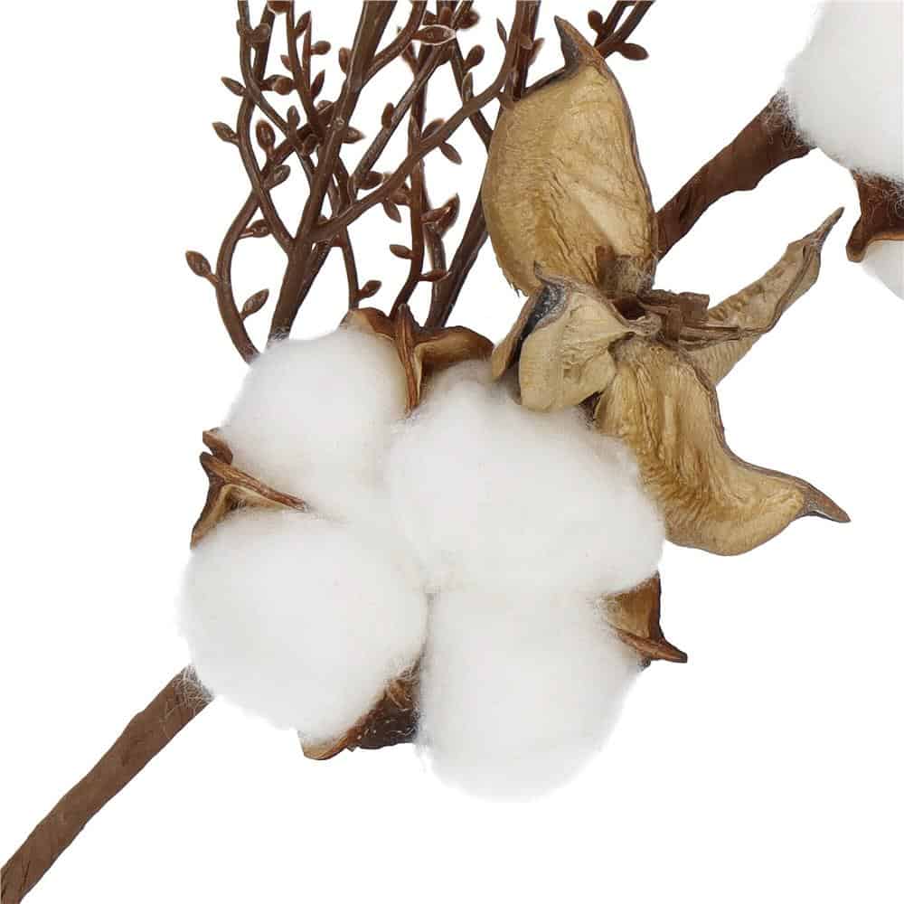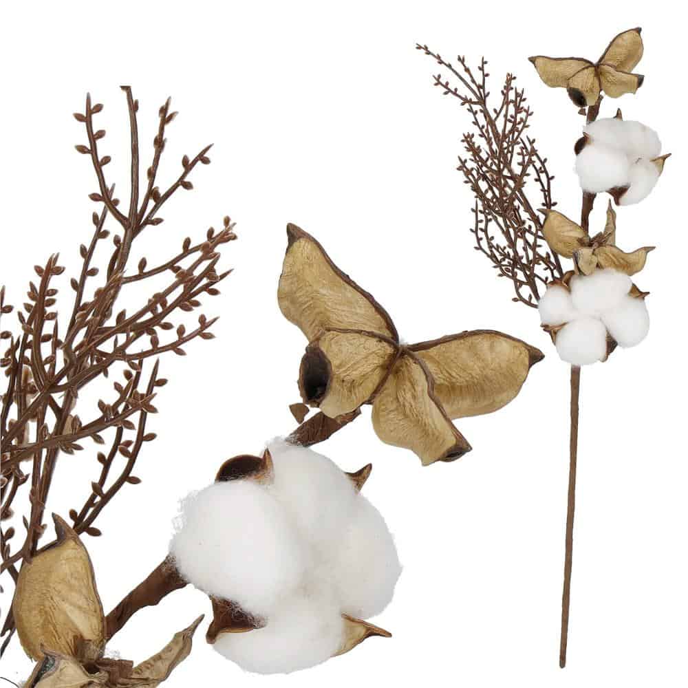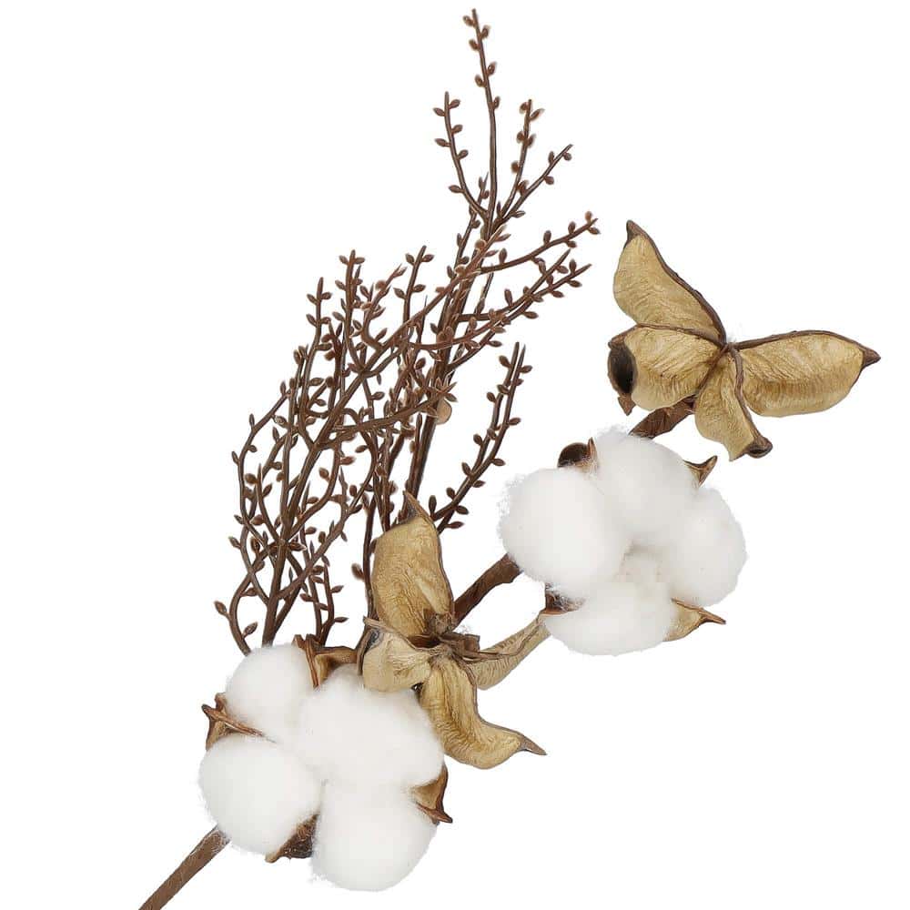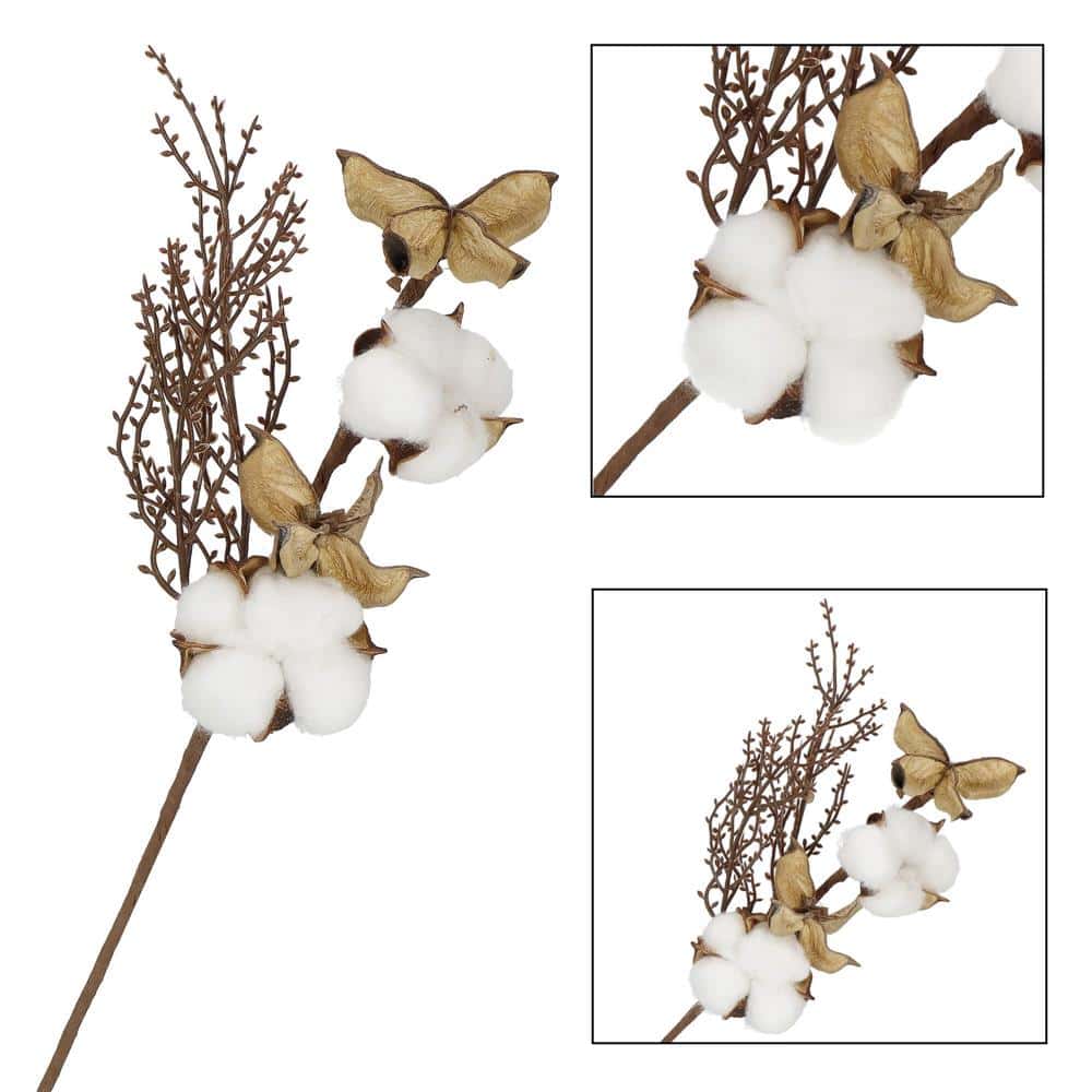 Ramura decorativa Craciun cu bumbac si plante uscate, 37 cm, alb/maro Mob360