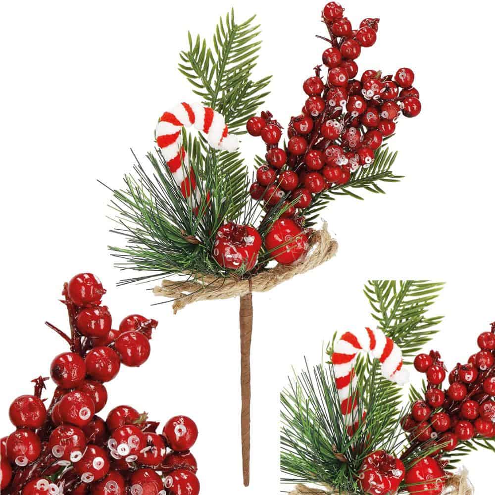 Ramura decorativa Craciun cu fructe rosii, acadea si sfoara iuta, 24 cm, rosu Mob360 – produs disponibil în magazinul Mob360.