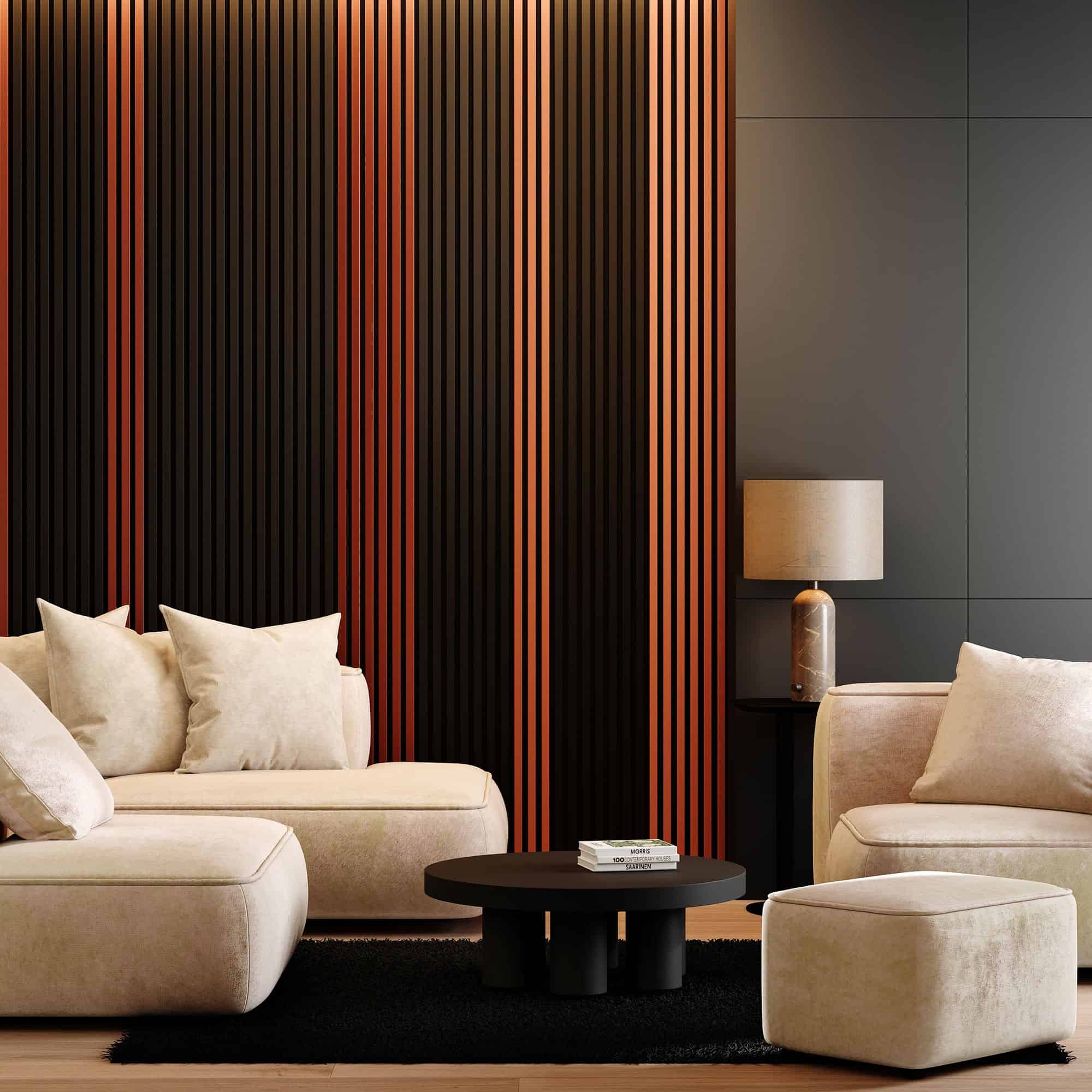 - Adauga eleganta si functionalitate spatiului tau cu un panou decorativ acustic tip riflaj, realizat din MDF premium si montat pe un suport PET netesut reciclat. Cu un finisaj sofisticat si un design modern, acest panou este ideal pentru perete sau tavan, in locuinte, birouri sau spatii comerciale. Structura sa acustica ajuta la reducerea zgomotului ambiental, oferind in acelasi timp un aspect vizual rafinat. Se instaleaza usor (multiple variante de fixare: adeziv, holsuruburi, etc) si permite acoperirea suprafetelor fara imbinari vizibile, asigurand un rezultat continuu si uniform.