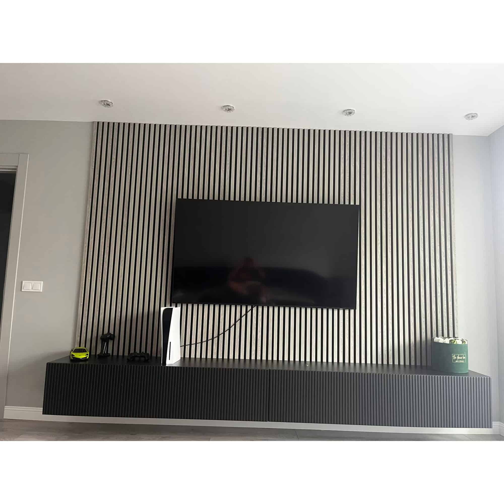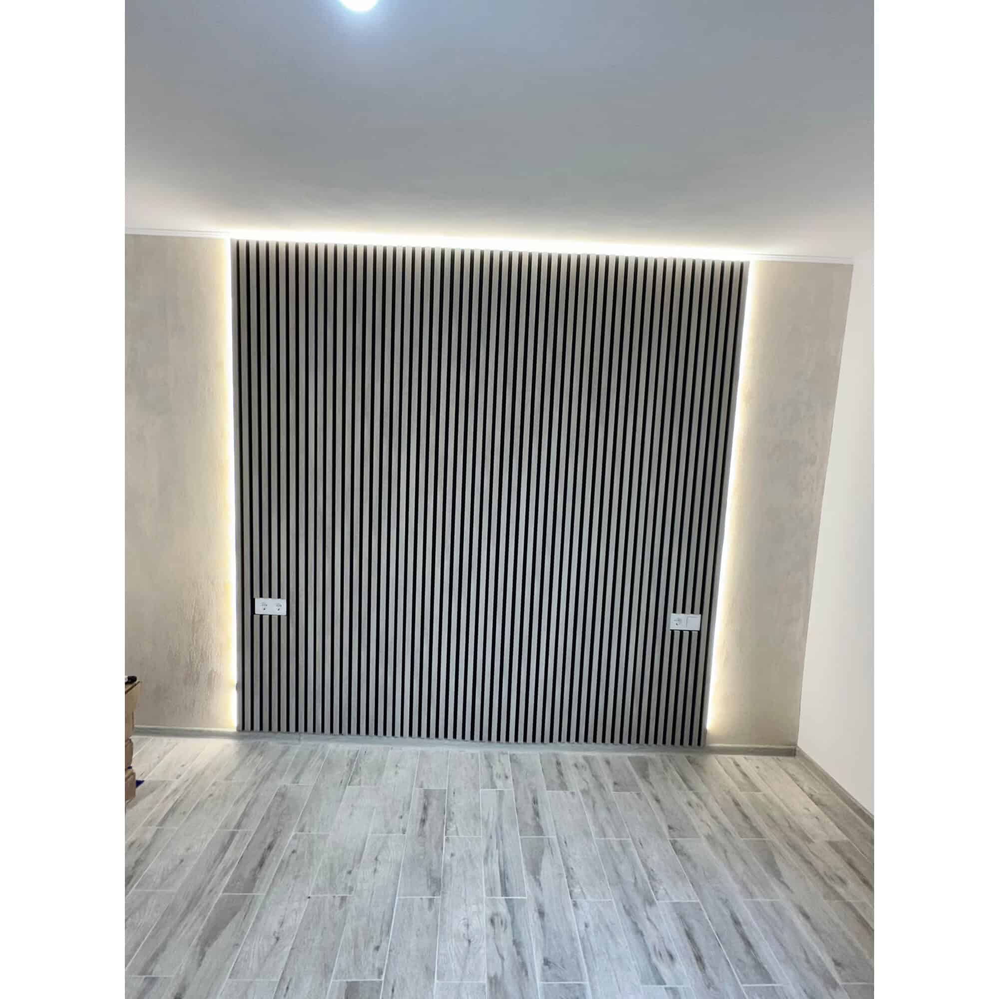 - Adauga eleganta si functionalitate spatiului tau cu un panou decorativ acustic tip riflaj, realizat din MDF premium si montat pe un suport PET netesut reciclat. Cu un finisaj sofisticat si un design modern, acest panou este ideal pentru perete sau tavan, in locuinte, birouri sau spatii comerciale. Structura sa acustica ajuta la reducerea zgomotului ambiental, oferind in acelasi timp un aspect vizual rafinat. Se instaleaza usor (multiple variante de fixare: adeziv, holsuruburi, etc) si permite acoperirea suprafetelor fara imbinari vizibile, asigurand un rezultat continuu si uniform.