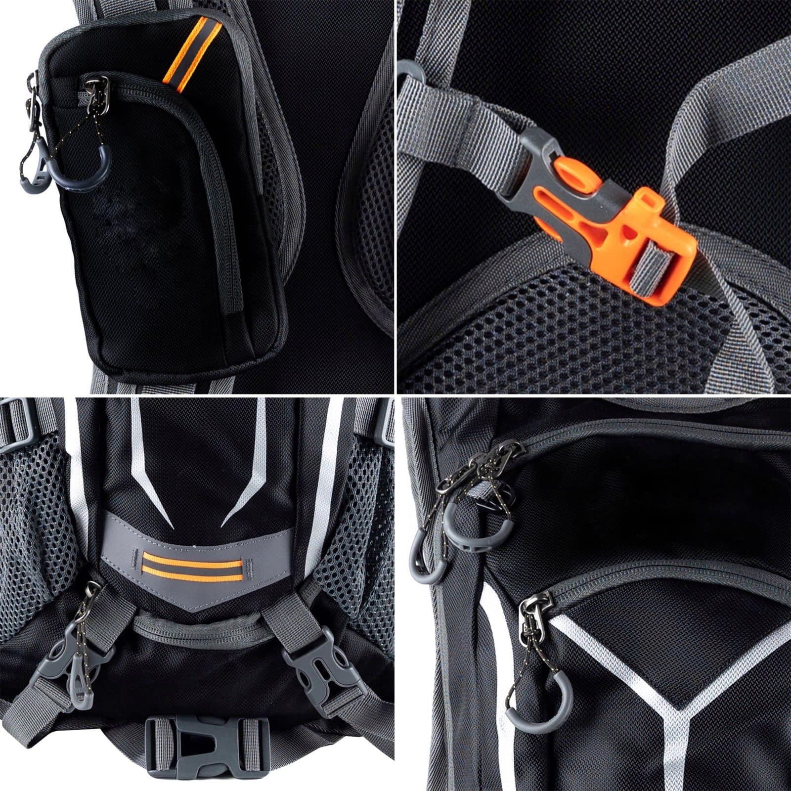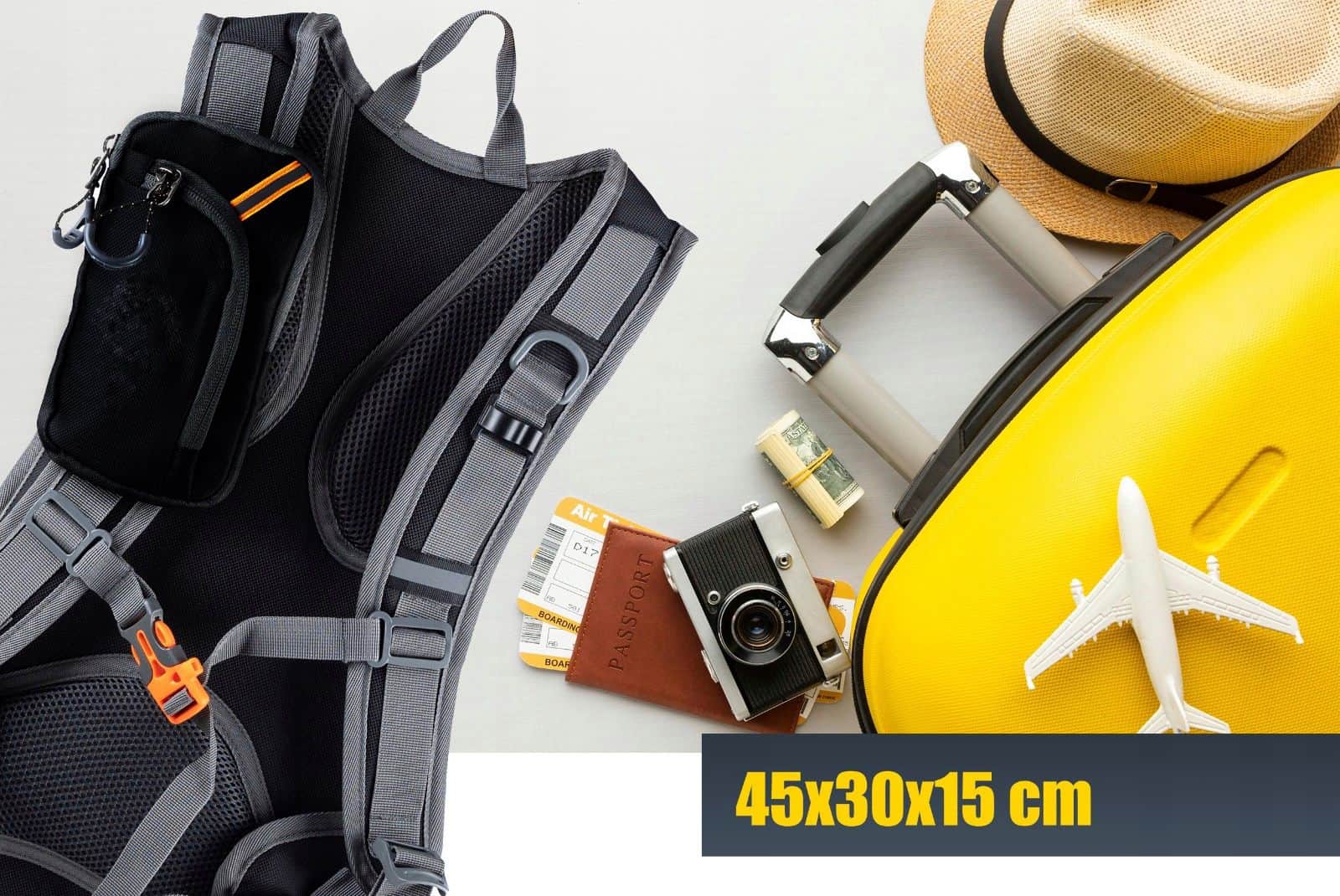 - Culoare: negru material: nailon dimensiuni: 45x30x15cm capacitate: 18l 1x compartiment principal cu 2x buzunare interioare 1x buzunar cu fermoar 2x buzunare laterale pentru bauturi plasa de transport (atunci cand nu este utilizata, este depozitata convenabil intr-un buzunar special) o mica husa detasabila cu 2x buzunare cu fermoar elemente reflectorizante fluier de semnalizare rucsacul este proiectat pentru a transporta un rezervor de apa (