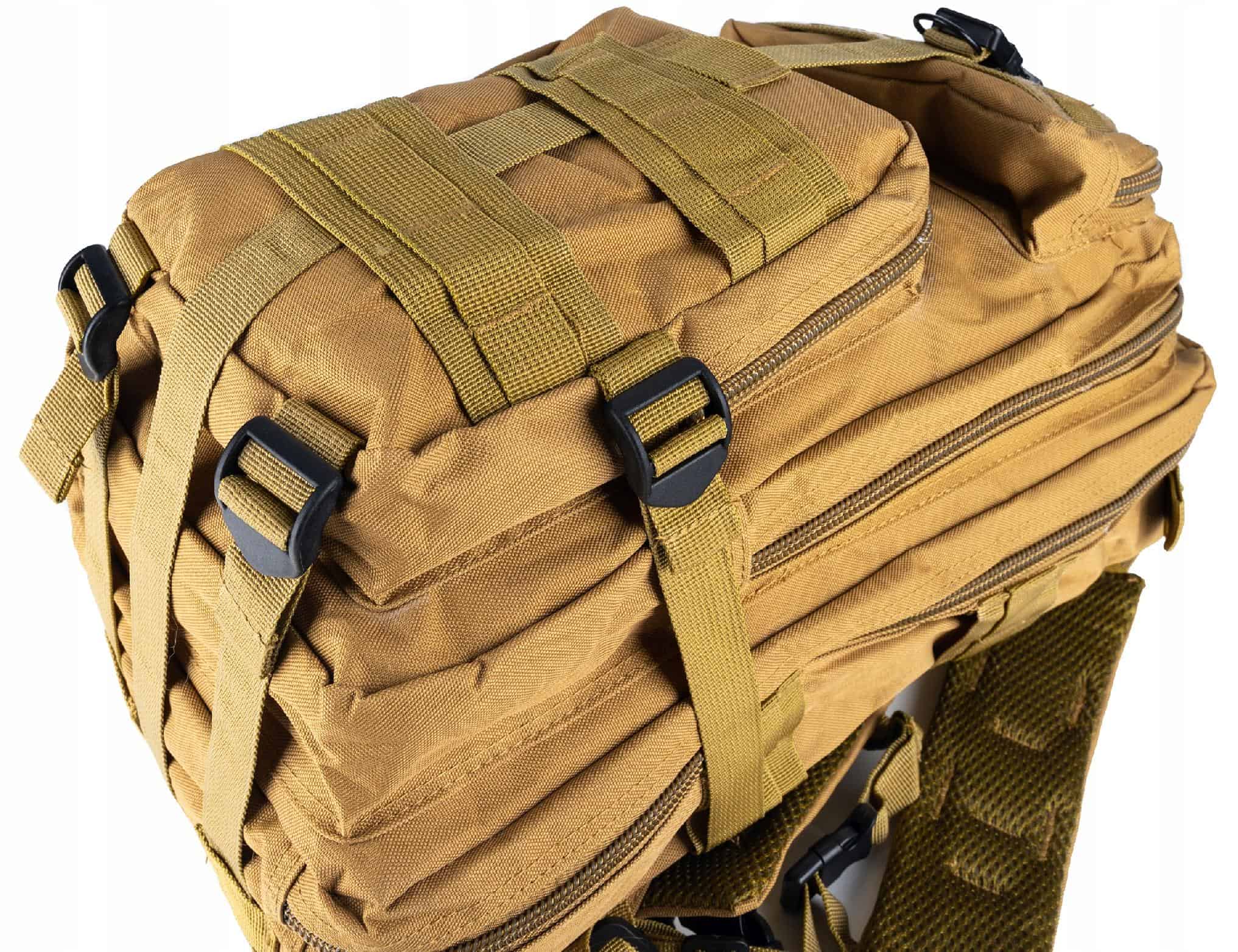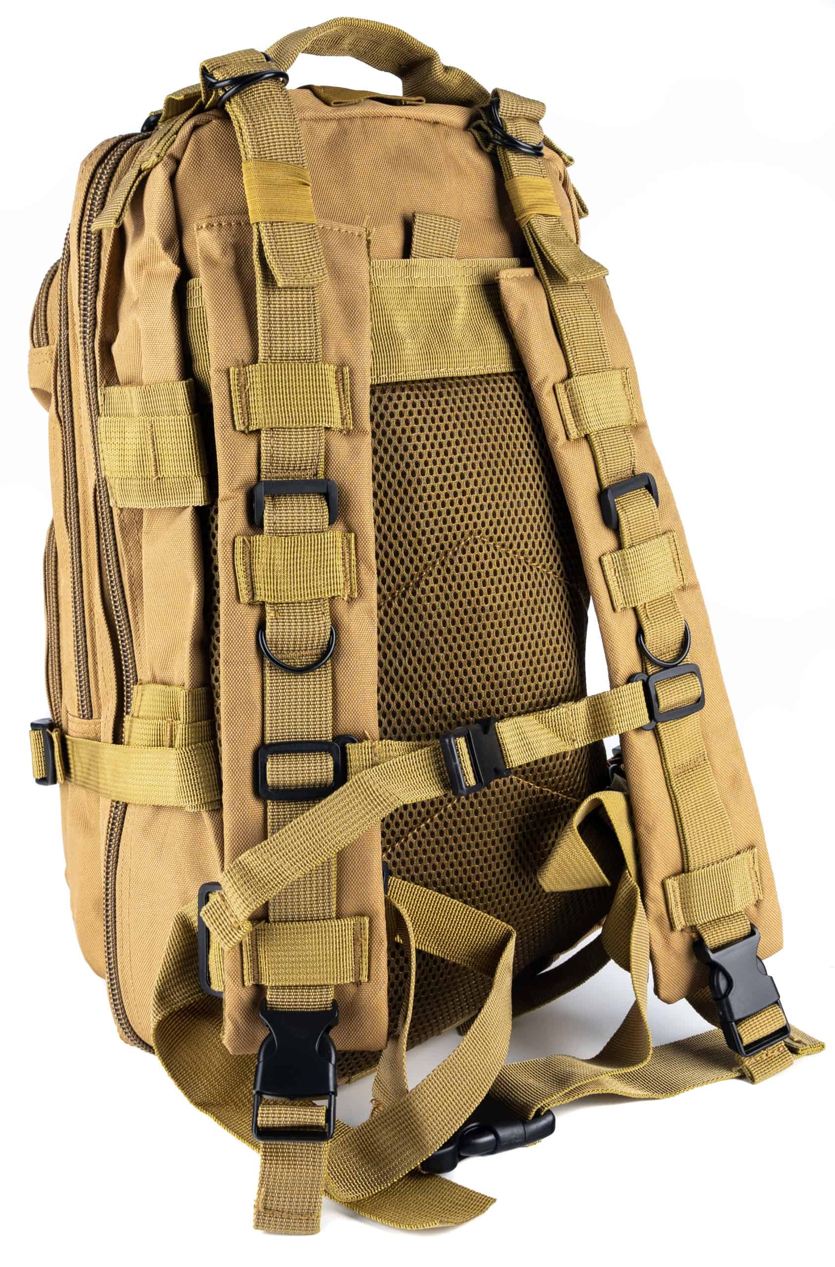 dimensiuni: 45x 25 x 23 cm material respirabil pentru spate + canale de aerisire fermoare detasabile duble si adanci 2x compartimente mari + 2x compartimente mai mici cu fermoar buzunar frontal ascuns suplimentar cu inchidere cu velcro capacitate: aproximativ 28 de litri material: poliester solid confortabil de utilizat Un rucsac versatil in stil militar cu functionalitate ridicata. Rucsacul incorporeaza solutii care s-au dovedit foarte utile pe multe campuri de lupta din intreaga lume timp de multi ani si care sunt acum disponibile si pentru dumneavoastra. Rucsacul este echipat cu doua compartimente mari. Datorita fermoarelor duble, detasabile in profunzime, rucsacul poate fi desfasurat cu usurinta. Buzunarele din fata permit accesul usor si rapid la cele mai necesare obiecte. Un buzunar ascuns in spate este ideal pentru depozitarea incarcaturii valoroase. Curelele de echilibrare permit ajustarea rucsacului la dimensiunile incarcaturii transportate, iar centura de sold stabilizeaza rucsacul, impiedicandu-l sa se deplaseze excesiv dintr-o parte in alta.