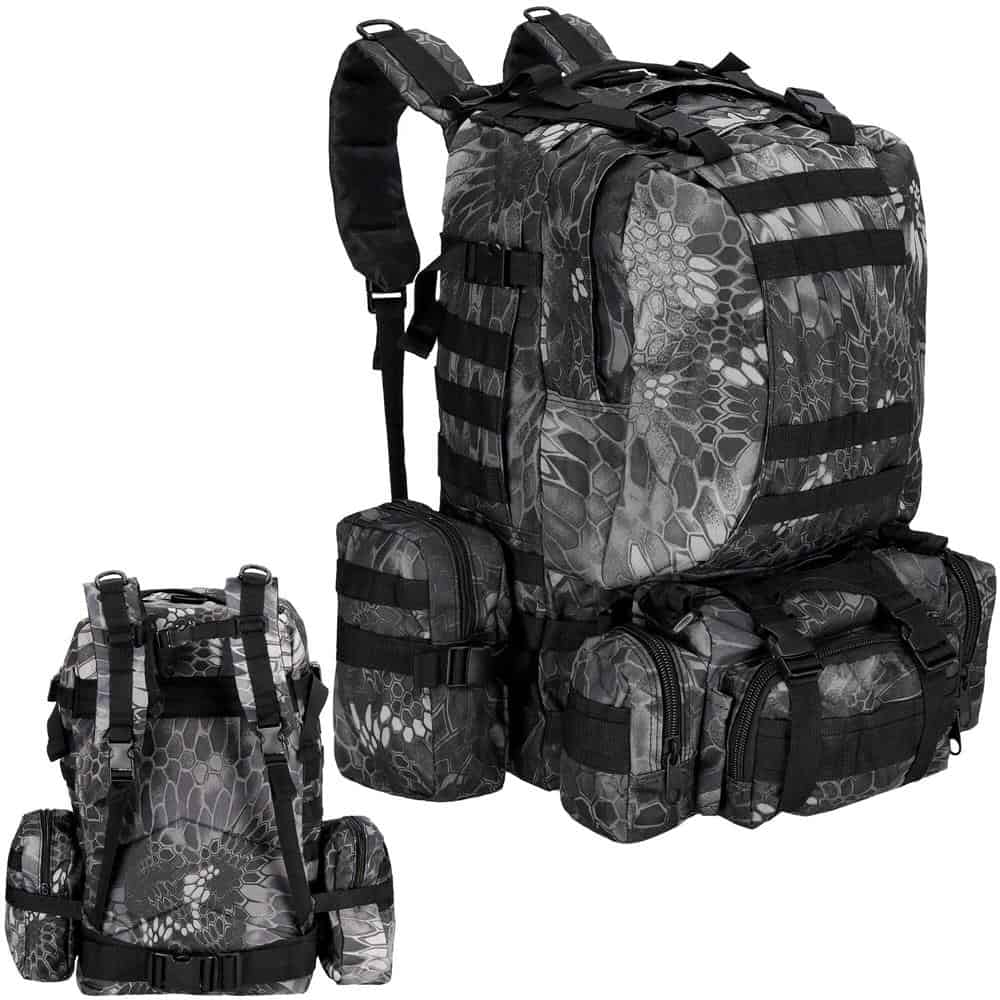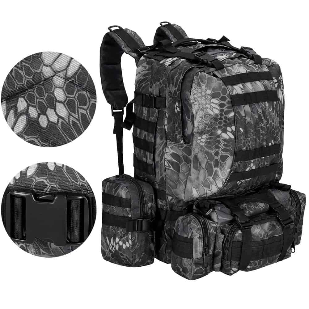 Material: poliester Catarame cu clichet: plastic Capacitate: 50L Rezistent la apa Inchidere: fermoar Buzunare laterale detasabile Dimensiuni: Inaltime totala 50 cm Latime totala 50 cm Adancime totala 40 cm Latimea compartimentului principal 30 cm Sistem de transport reglabil: 40 – 67 cm Catarama de centura reglabila: 36 – 70 cm Rucsacul nostru a fost dotat cu numeroase compartimente suplimentare, detasabile, un sistem Molle de neinlocuit, sisteme de transport reglabile, o centura pentru solduri si o serie de alte avantaje: Rezistent la apa – materialul din poliester, in plus fata de interiorul cauciucat, asigura o protectie adecvata Sistem Molle – permite depozitarea si montarea altor accesorii importante Amelioreaza presiunea asupra coloanei vertebrale si a umerilor in timpul utilizarii Maner de transport – in partea superioara a rucsacului Catarame de blocare – continutul rucsacului este foarte bine protejat Buzunar ascuns 2x compartimente principale – foarte incapatoare In plus fata de compartimentul principal spatios, am echipat rucsacul nostru cu compartimente si buzunare suplimentare. Ca urmare, fiecare obiect din echipamentul dvs. isi va gasi locul in rucsac. In ciuda dimensiunilor sale mai mari, produsul are o greutate redusa, astfel incat confortul de utilizare este intotdeauna la un nivel ridicat. Rucsacul este dotat cu accesorii practice, care cu siguranta va vor fi de folos in timpul calatoriilor si vor creste confortul de utilizare: Curele reglabile: curele de sold si de umar. Elemente de spuma – pe spate si pe curelele de umar Buzunar ascuns pe spate Catarame din plastic, durabile Baza cauciucata a compartimentului principal Interiorul cauciucat al compartimentelor suplimentare Maner superior pentru al purta in mana
