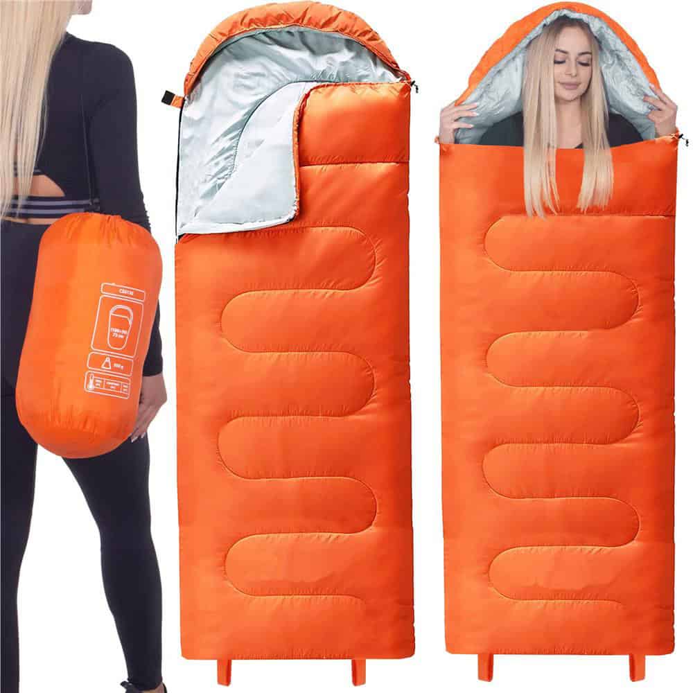 Sac de dormit tip mumie, cu geanta de transport, 175x73cm, 8-20grade, portocaliu Mob360 – produs disponibil în magazinul Mob360.