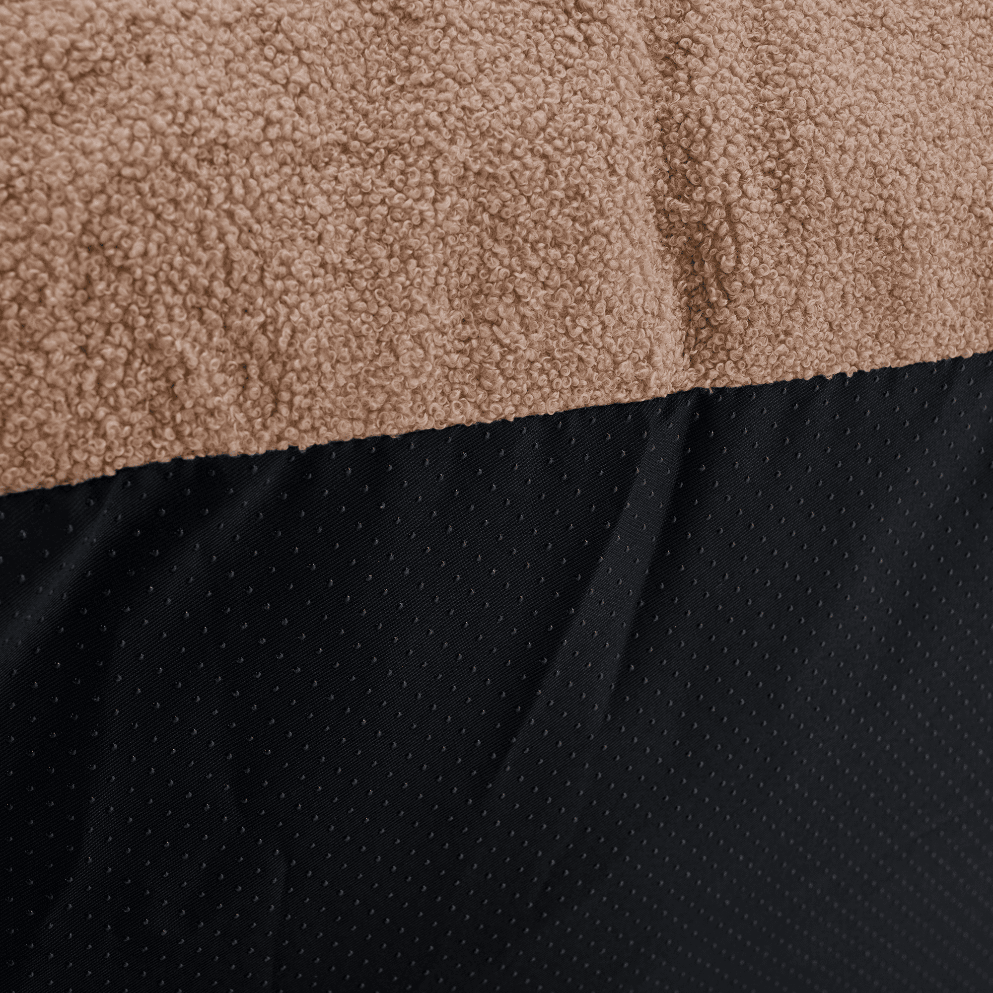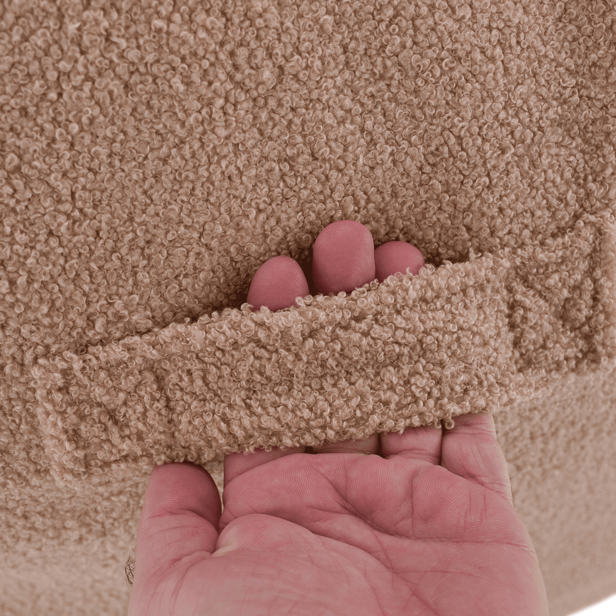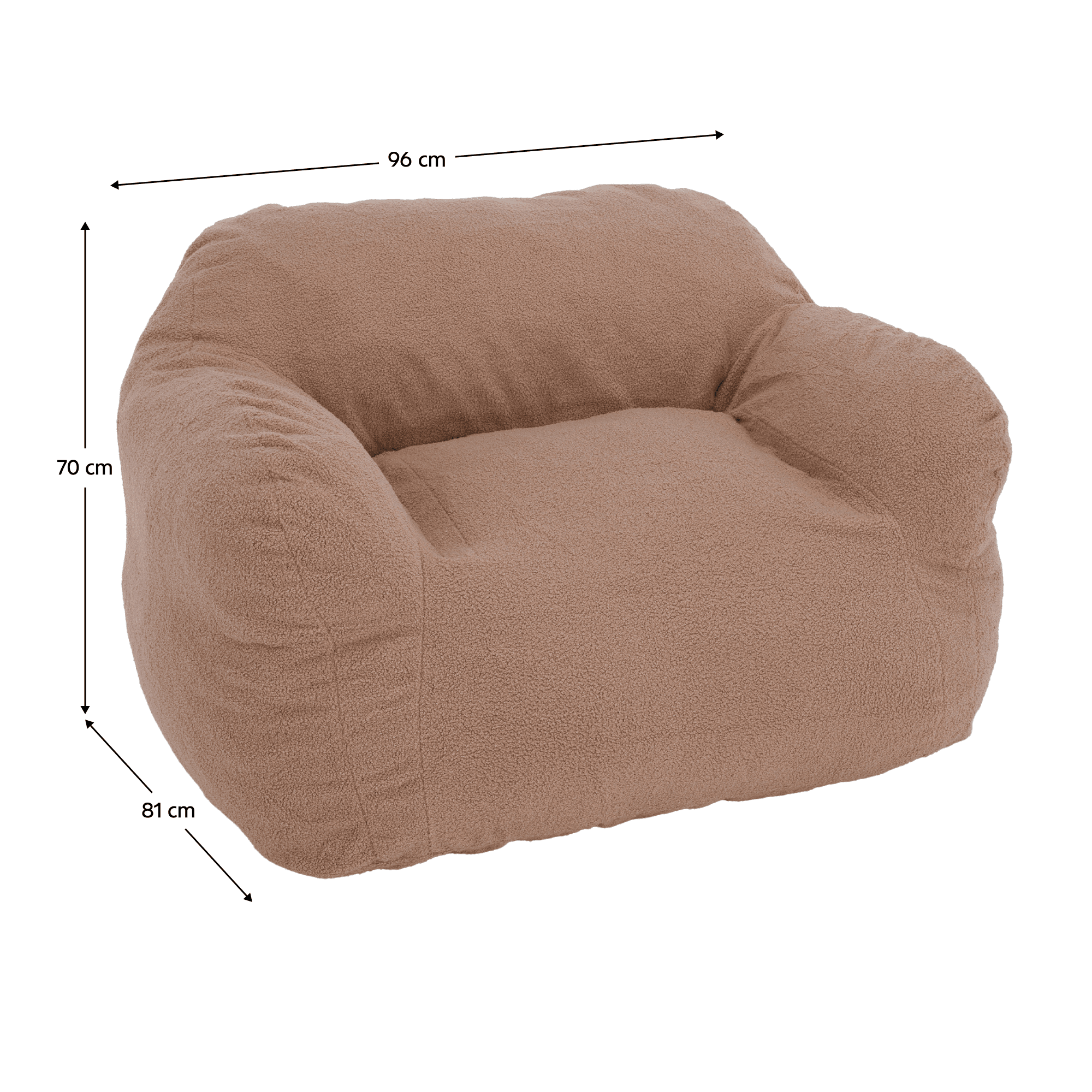 Material: ţesătură Bouclé/spumă de compresie Rezistenţa ţesăturii la frecarea conform testului Martindale: 45 000 cicluri de frecare Culoare: maro deschis Dimensiuni (lxAxh): 96x81x70 cm Un mâner practic pe spate Material confortabil Umplutura este non-toxică Întreţinere uşoară Curăţare cu apă cu săpun cu ph scăzut Vă recomandăm să deschideţi spuma şi să o lăsaţi să-şi atingă volumul timp de 24 de ore Portanţă: 90 kg