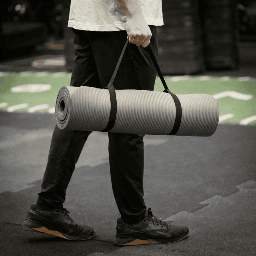 Saltea fitness antiderapanta din NBR, 183x61x1 cm, cu curea transport, gri Mob360 – produs disponibil în magazinul Mob360.
