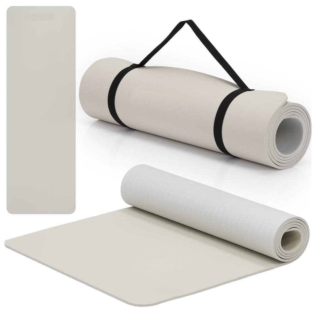 Saltea fitness antiderapanta din TPE, 183x61x1 cm, cu curea transport, bej Mob360 – produs disponibil în magazinul Mob360.