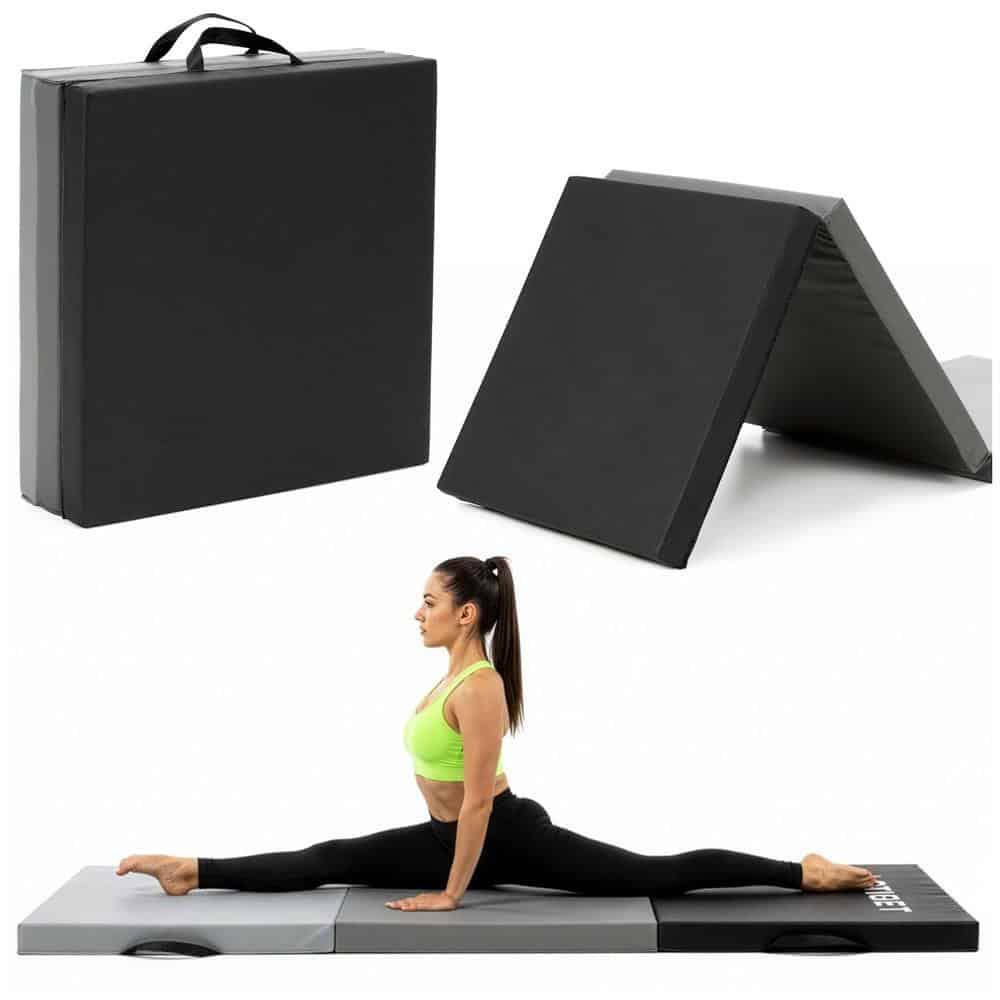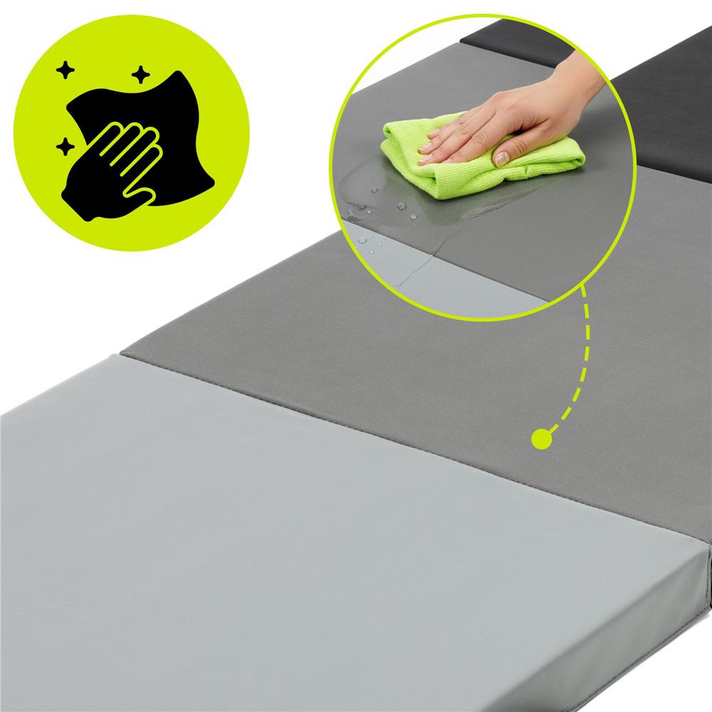Saltea fitness pliabila 3 segmente, PVC si spuma EPE, 180x60x6 cm, negru si gri Mob360