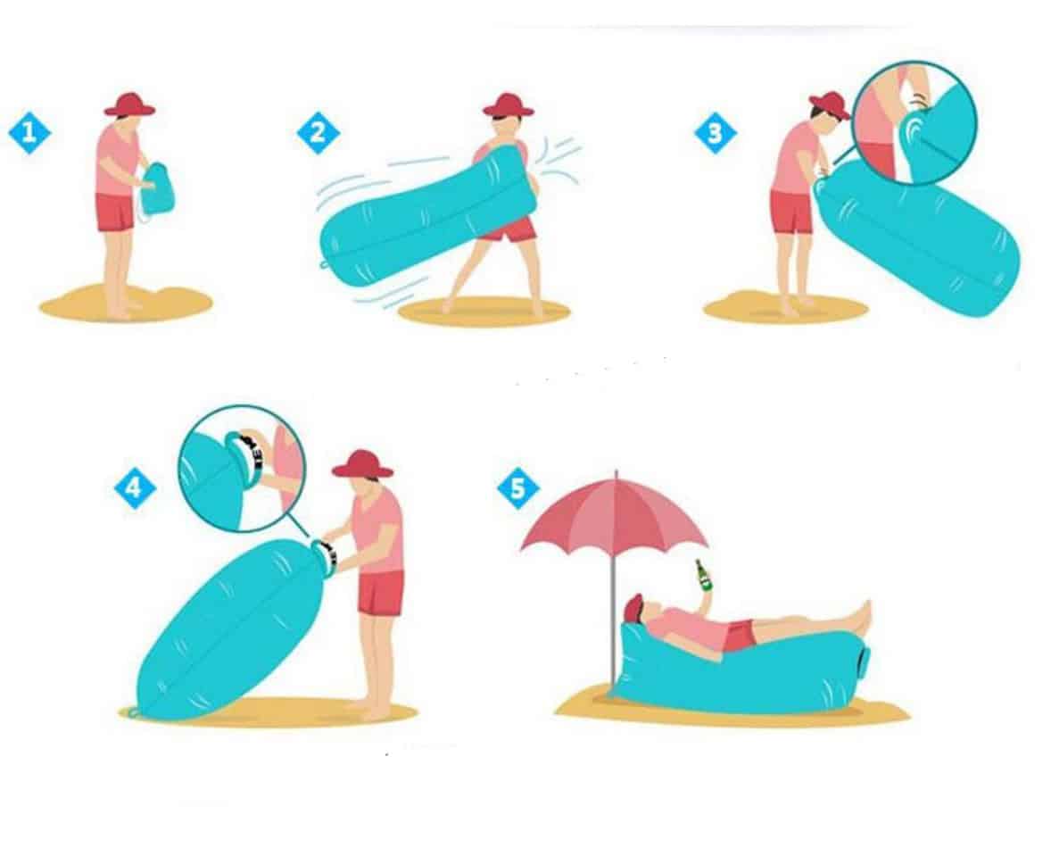 Saltea gonflabila pentru plaja cu pliere rapida, maxim 180kg, 180x70x50 cm, bleumarin si negru Mob360 – produs disponibil în magazinul Mob360.