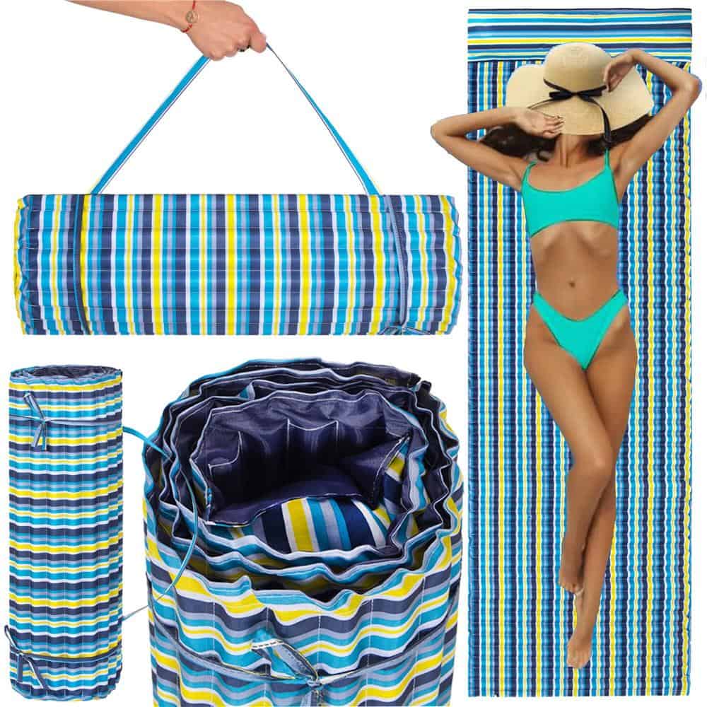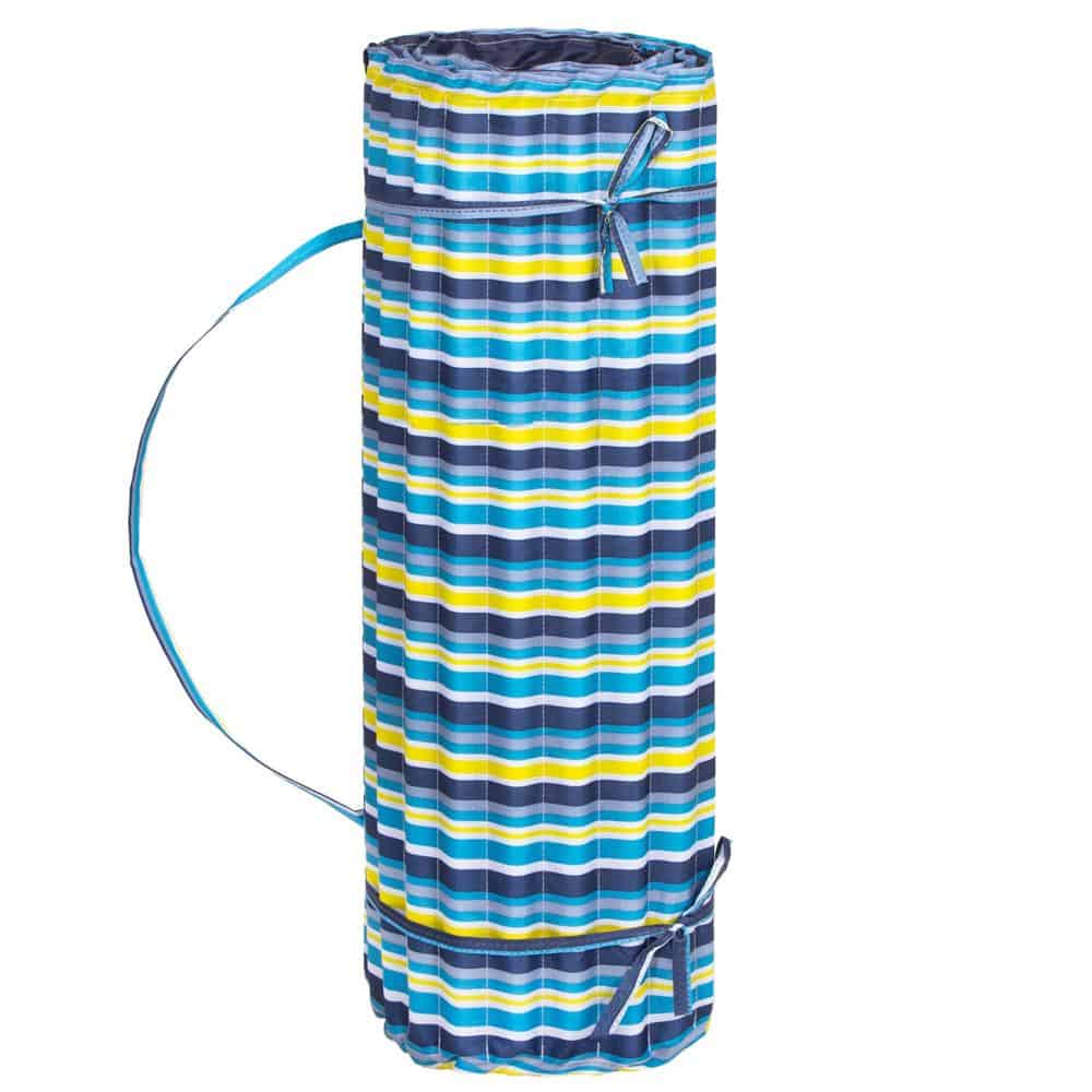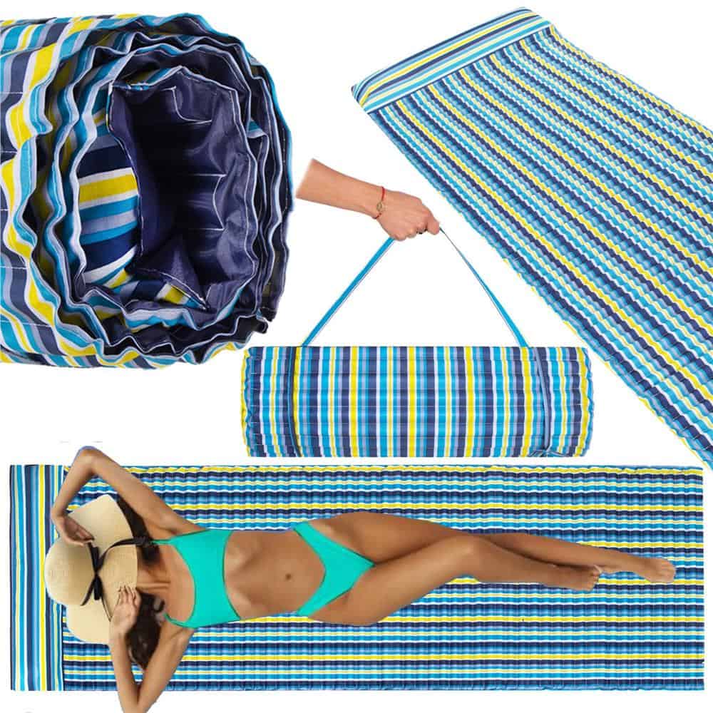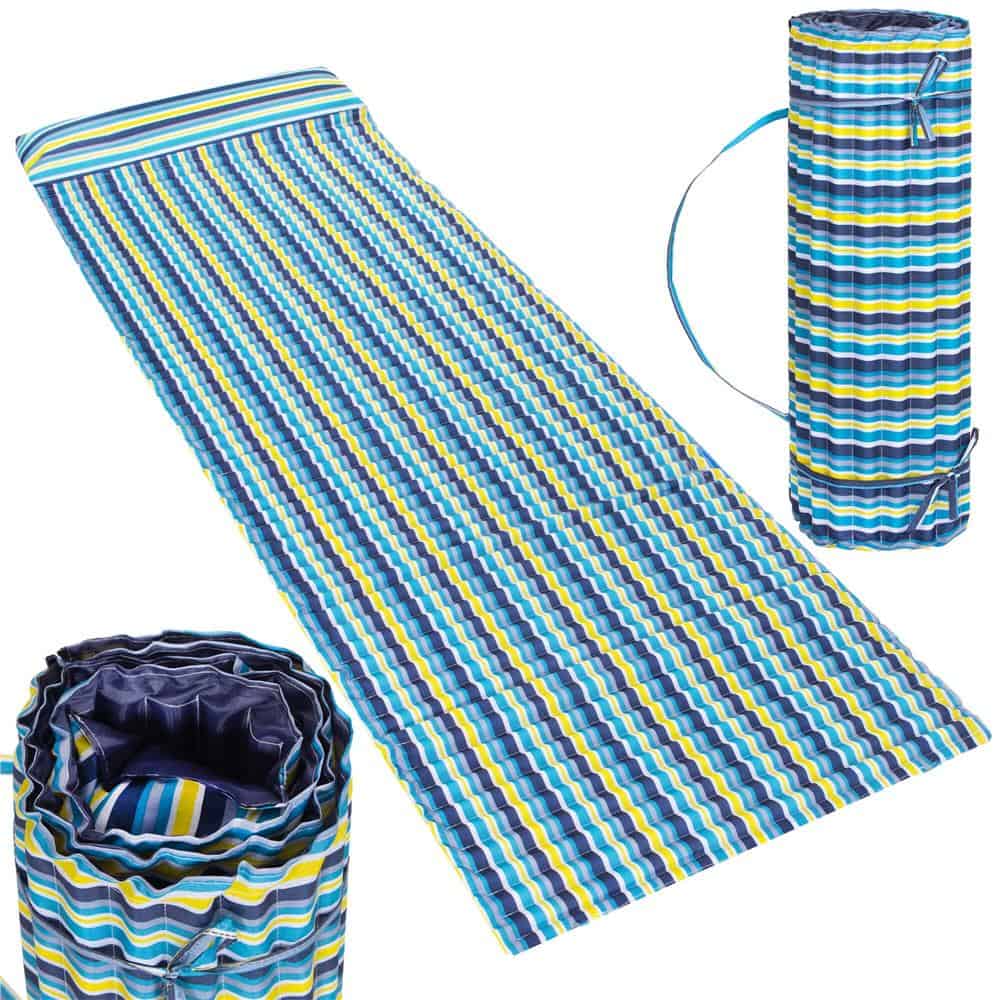 Saltea pentru plaja pliabila, din spuma, ultra-usoara, cu perna si maner de transport, 60x180cm, albastru galben Mob360 – produs disponibil în magazinul Mob360.