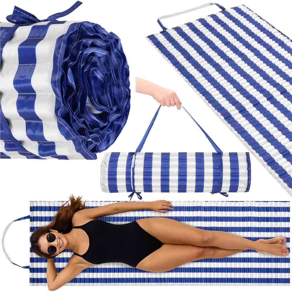 Saltea plaja pliabila din spuma EPE, cu maner si prindere, 180x60x1 cm, albastru cu dungi Mob360