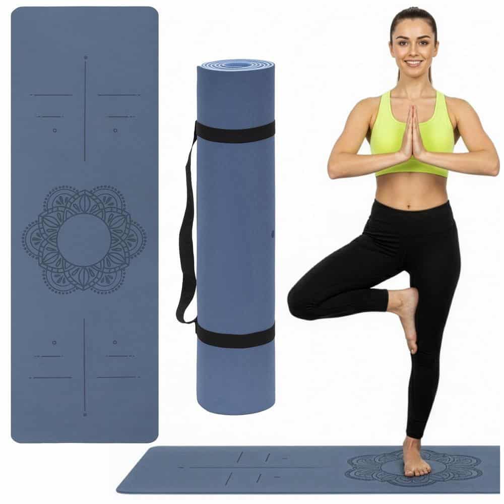 Saltea yoga antiderapanta din TPE, 183x61x0.6 cm, cu curea transport, albastru Mob360