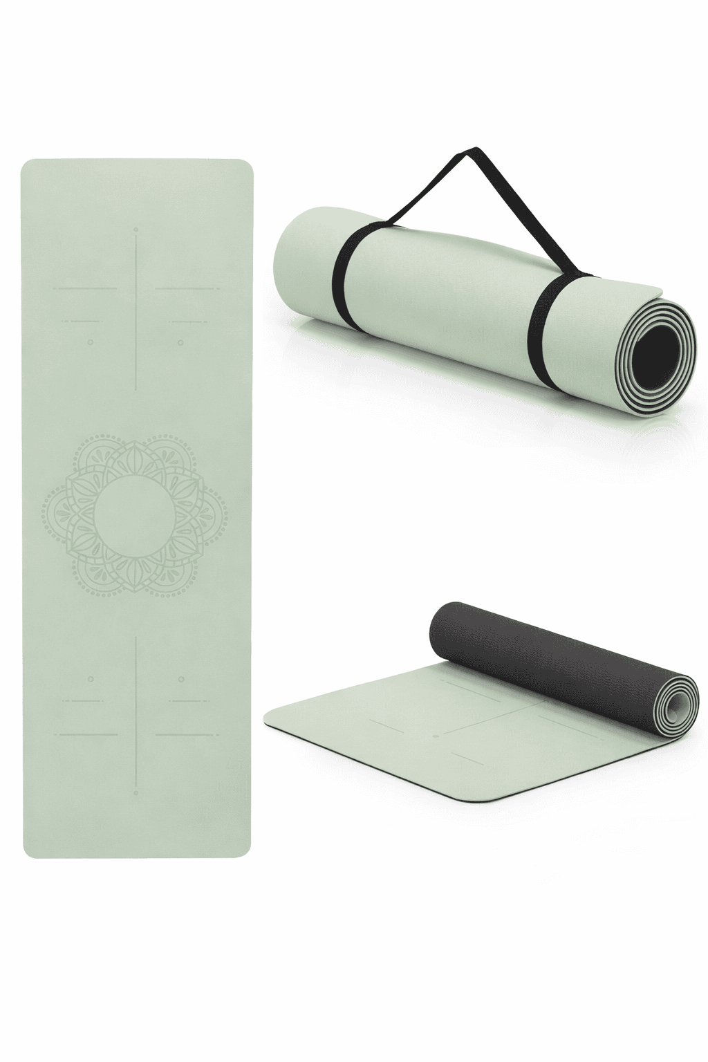 Saltea yoga antiderapanta din TPE, 183x61x0.6 cm, cu curea transport, verde Mob360 – produs disponibil în magazinul Mob360.