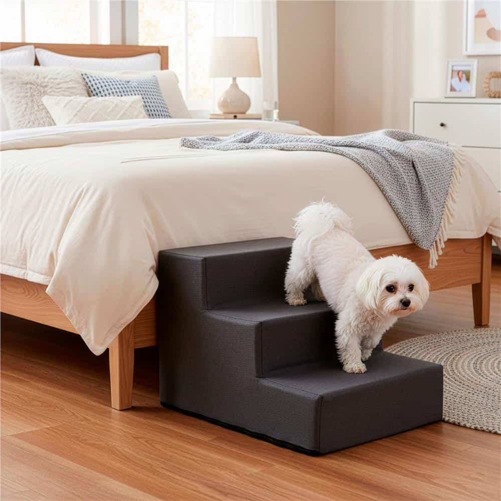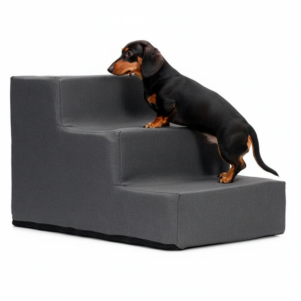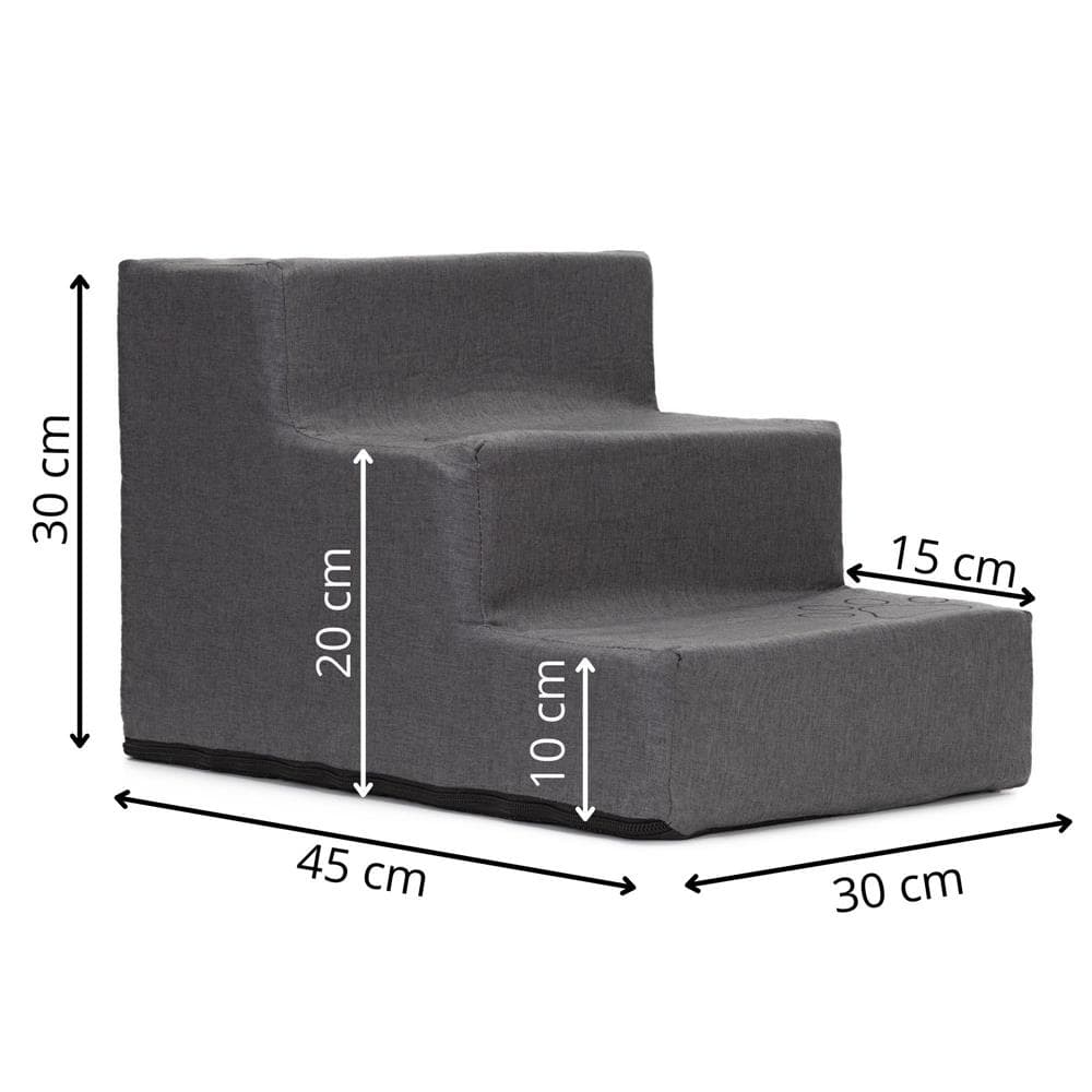 Scara pentru animale de companie, caini sau pisici, 3 trepte, antiderapanta, husa detasabila, inaltime 30 cm, gri inchis Mob360