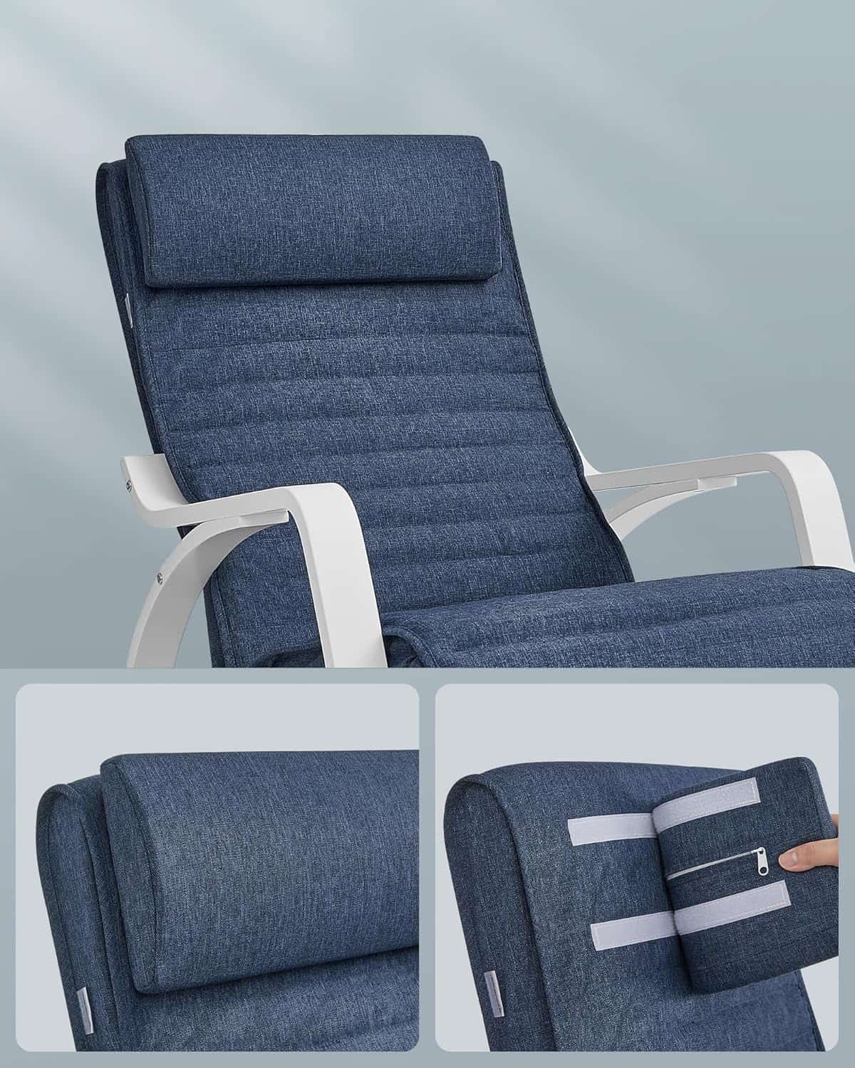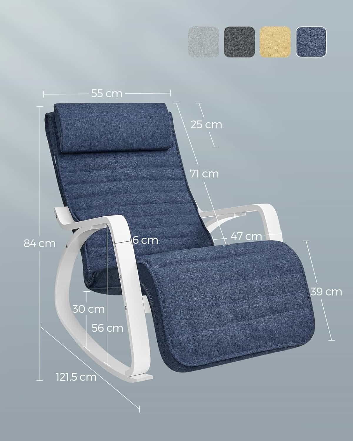 In plus, tetiera poate fi usor indepartata sau atasata datorita inchizatoarelor practice Velcro.Puteti utiliza fotoliul balansoar in dormitor, in camera de zi sau in birou.